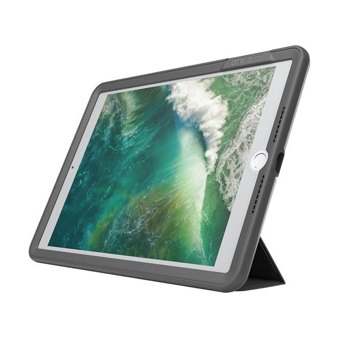 Productbeschrijving: Met de OtterBox Unlimited Apple iPad Book Case is je iPad (2017)/(2018) beschermd tegen vallen en botsen. Door de extra stevige behuizing blijft je iPad ongeschaad, zelfs als deze valt of je ergens tegenaan stoot. Ook je scherm blijft vrij van krassen, want deze hoes komt met een ingebouwde screenprotector. Dankzij de uitsparingen bedien je je iPad zonder problemen wanneer deze in de hoes zit. Zet met behulp van de standaard jouw iPad neer in een handige stand. Kijk een ontspannen een film door je iPad rechtop te zetten of zet de standaard lager om door je Facebook tijdlijn te scrollen op de bank.