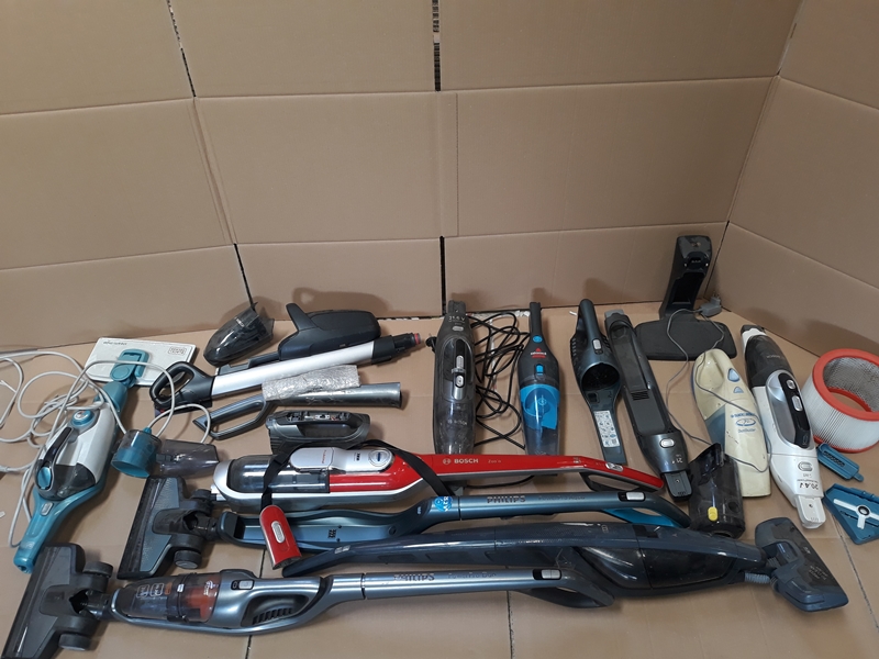 Over de Partij 17 verschillende stofzuigers (steel- en zakstofzuigers)