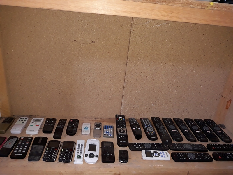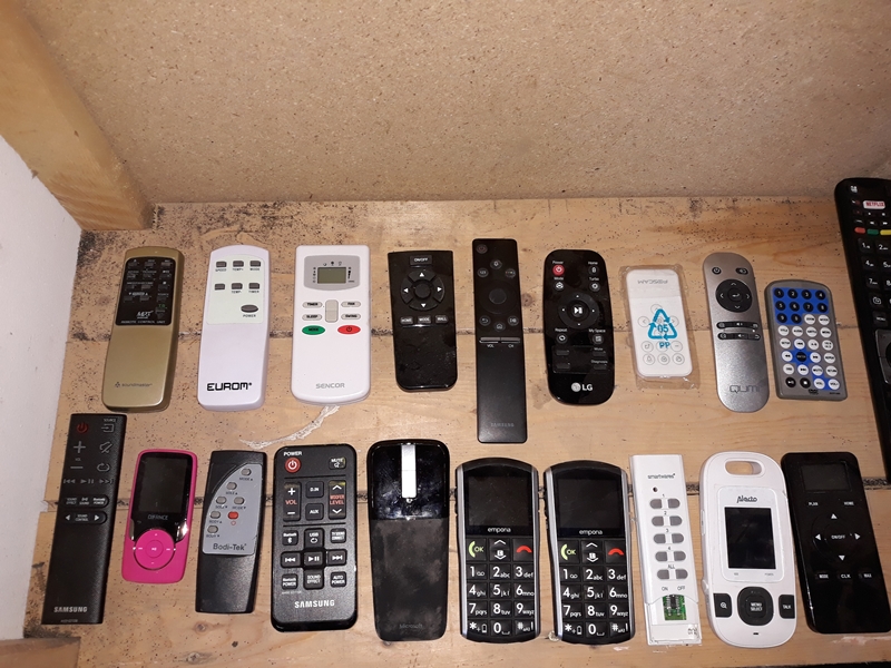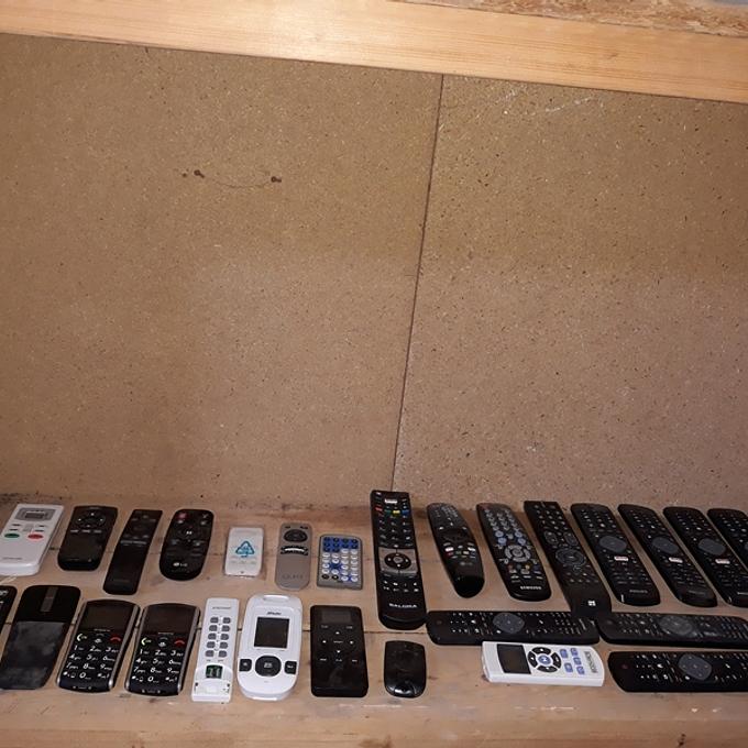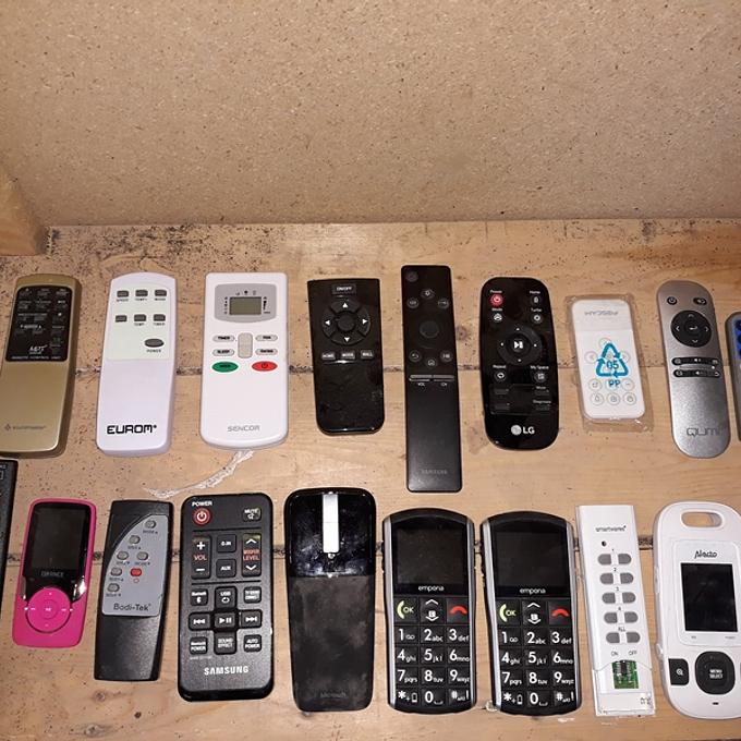 Bestaande uit: Veel verschillende types en soorten afstandbedieningen. 8x Philips, 6x Samsung, 2x LG, 2x Eurom. Daarnaast diverse merken als Soundmaster, Microsoft, One For All, Bodi-Tek, Scalarider, Qumi, Ecovacs, Oregon Scrientific, Kensington, Salora, Smartwaves, sencor.