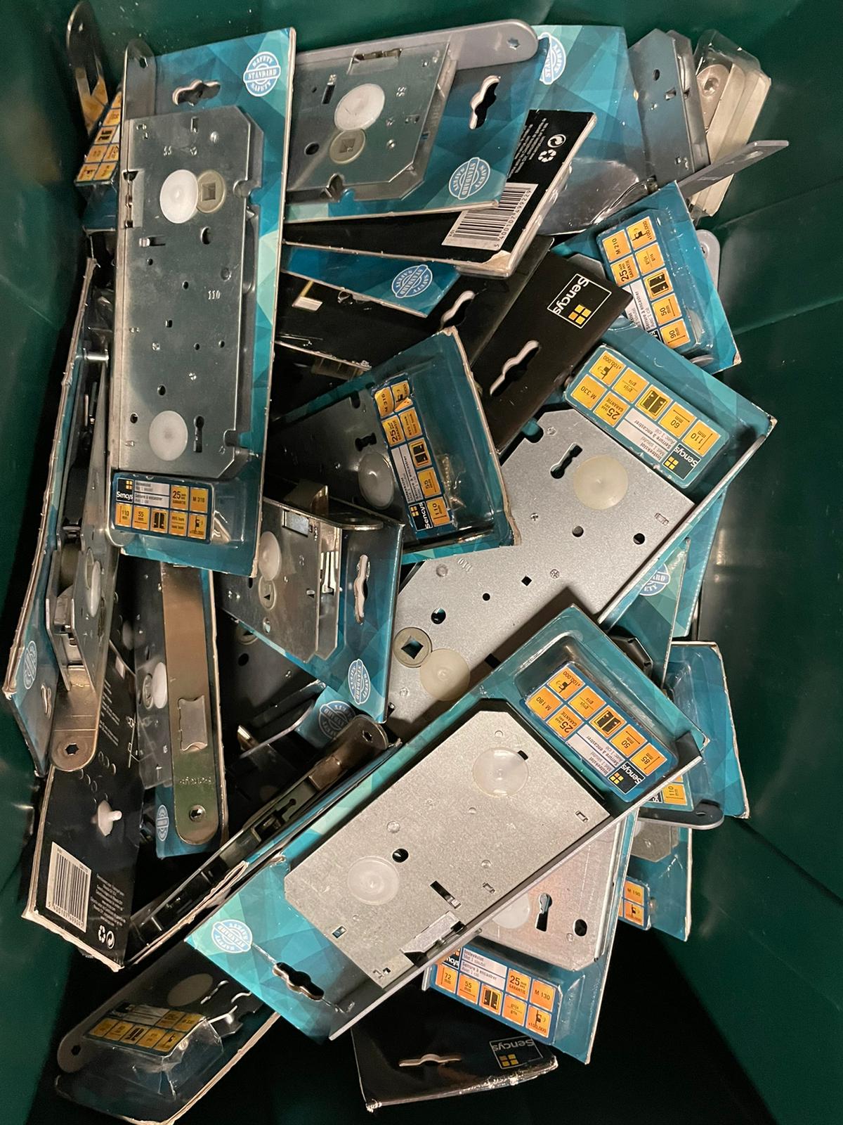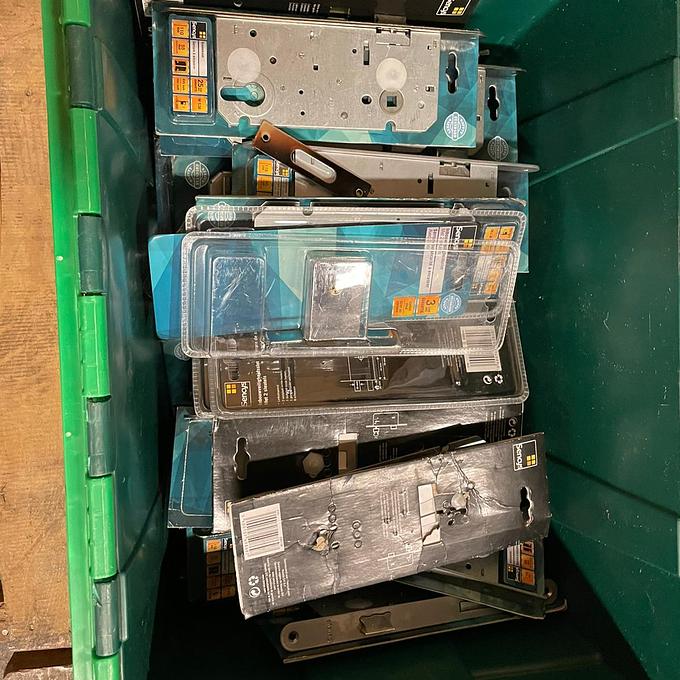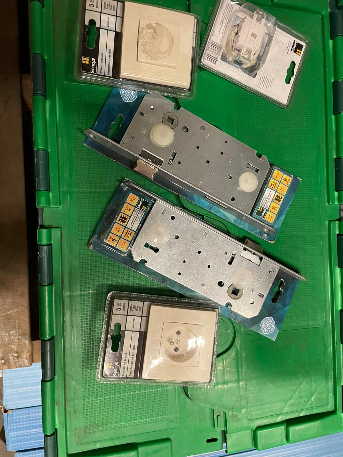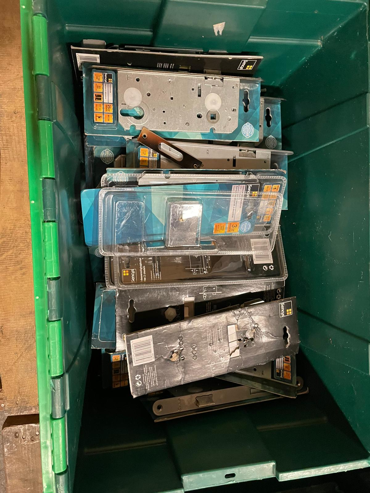 Partij 9 bakken hang- en sluitmateriaal