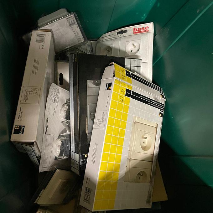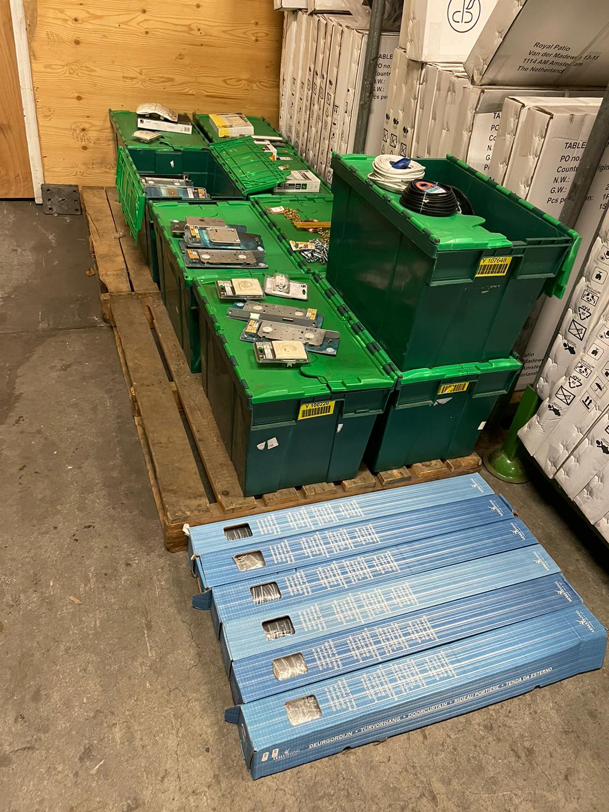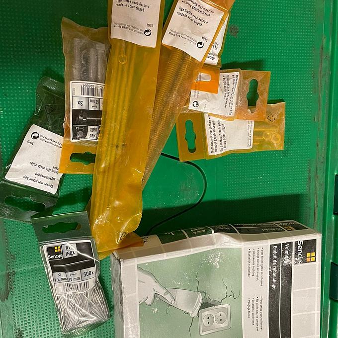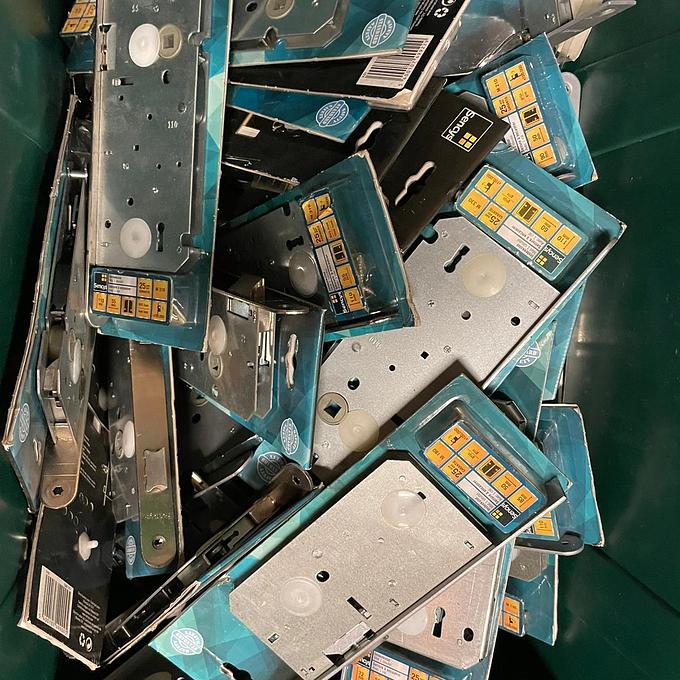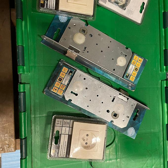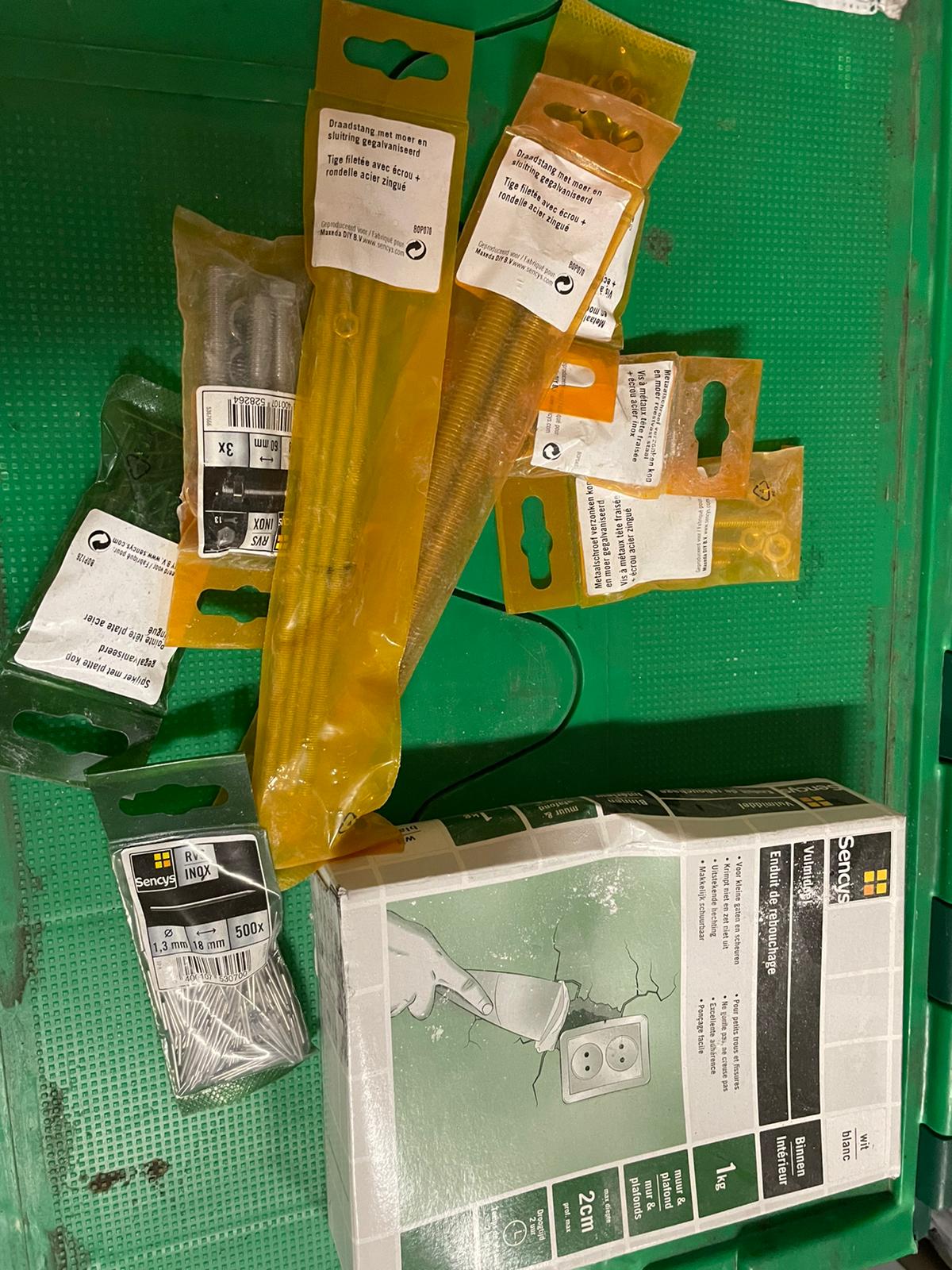 Partij 9 bakken hang- en sluitmateriaal