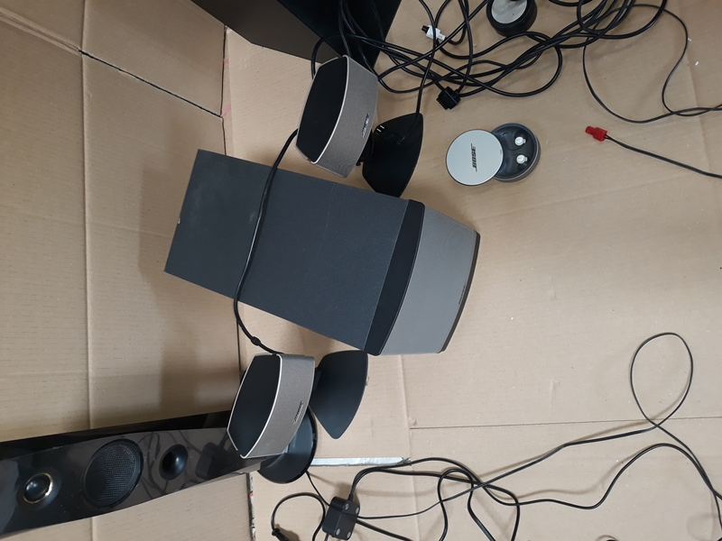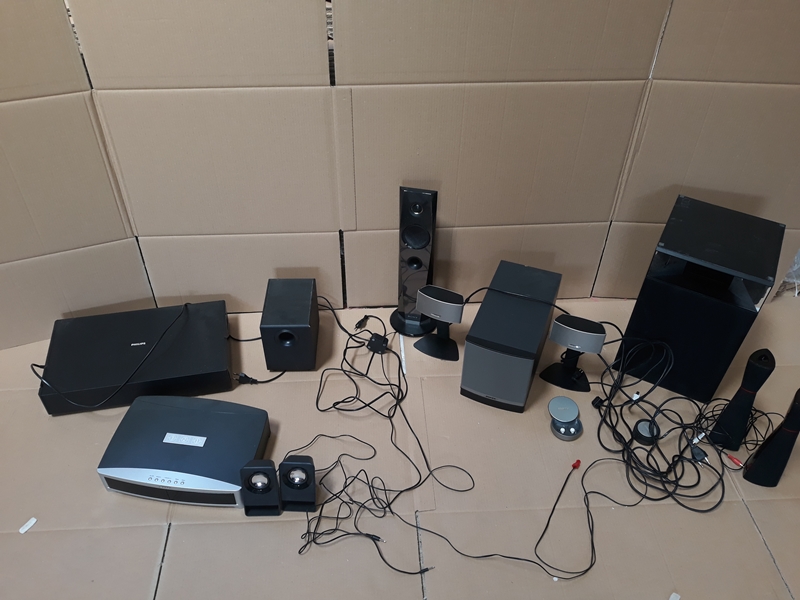 Bestaande uit: Types: Philips SWB50 speaker, Bose Av3-2-1II GSX Home entertainment system, Soundmaster NR540 platenspeler, Bose 414068 multimediaspeaker systeem, Logitech Z213 2.1 speakersysteem, Sony SS-WSB126 speaker, Sony SS-TSB135 speaker, Bose noise-masking sleepbuds, Audio Technica AT-LP60-USB platenspeler, Sony PS-HX500 stereoturntable-system, logitech Z213 2.1 speakersystem
