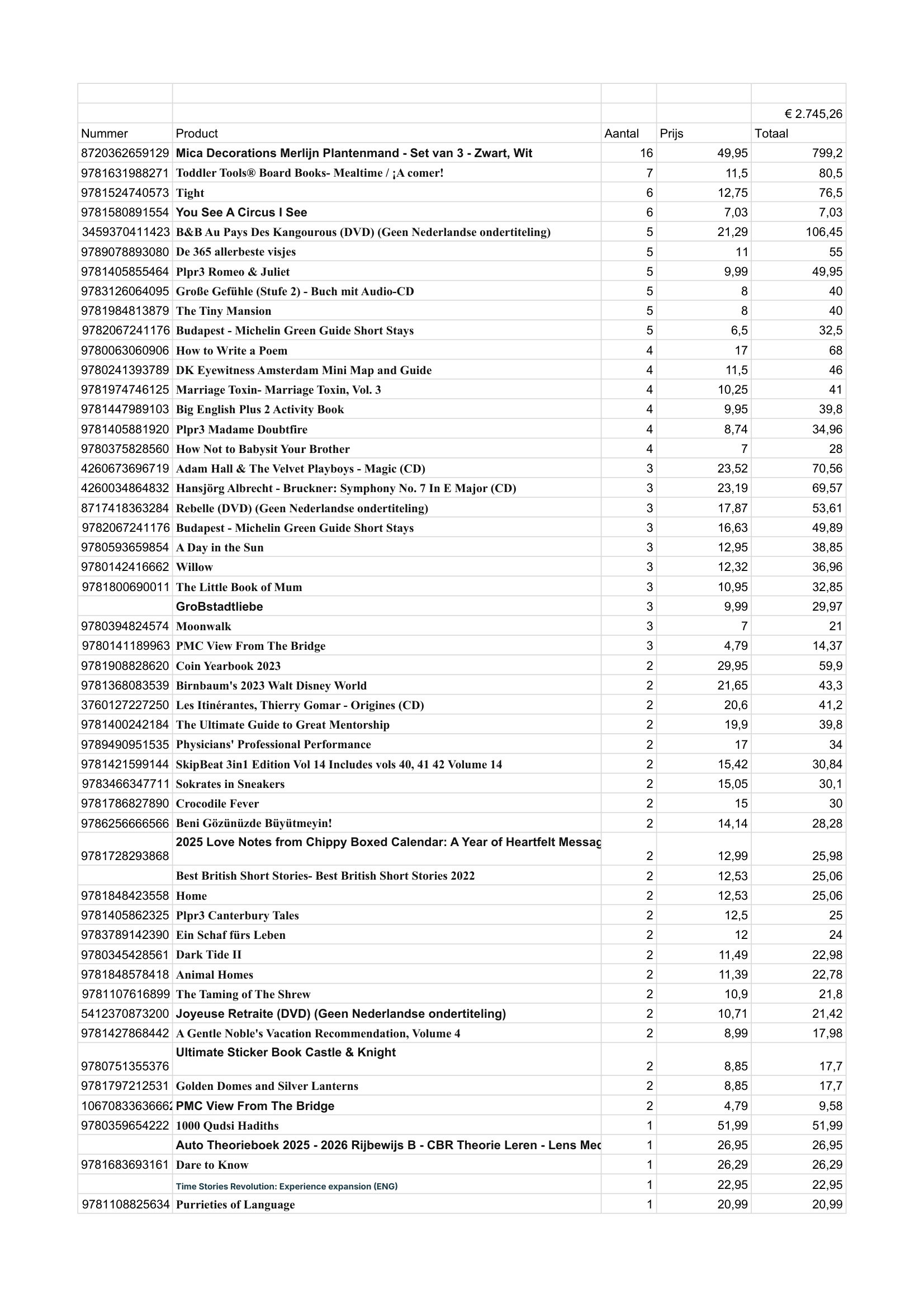 Productnaam: Mica Tuinmanden (16x) en boeken (153x)