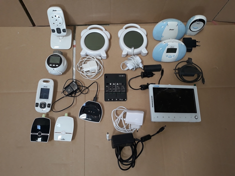 Bestaande uit: Partij bestaat onder andere uit: Alecto DBX-88 ECO, Alecto wekker, Luvion Prestige Touch 2, Babymoov, Alecto DBX-88 ECO.