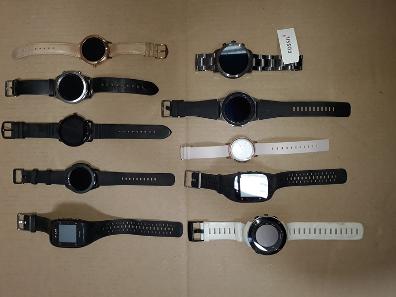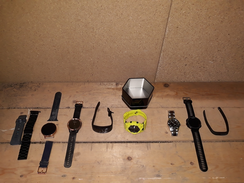 Bestaande uit: Types: Huawei Honor NYX-B10, Huawei ERS-B29, Huawei ERS-B29, Huawei ERS-B29, Huawei ERS-B29, Samsung Galaxy Watch, Huawei ERS-B29, FitBit, Suunto Ambit3 Vertical, Huawei ERS-B29, Huawei ERS-B29, Huawei ERS-B29, MI 2AC8UXMSH04HM, Huawei ERS-B29, Fossil DW2b, Samsung Gear S3 Classic, Fitbit, M430 Polar 2P, Fossil DW4a, M430 Polar 2P, Fossil DW5A, Samsung Galaxy Watch, Misfit, Invicta pro diver 9307, Garmin vivomove HR sport horloge, Garmin Forerunner 735XT, smartwatch ?, misfit vapor 2 gen 4 display, fitbit Flex 2, G-Shock GBA-800-9AER.