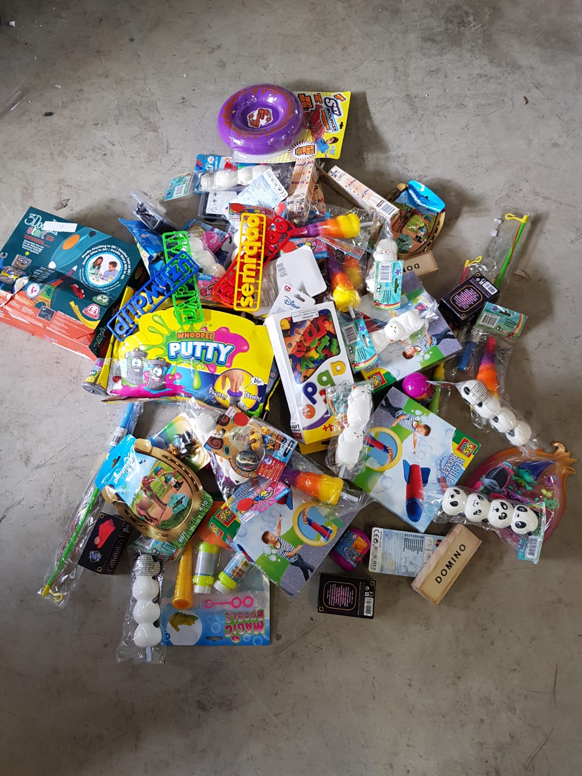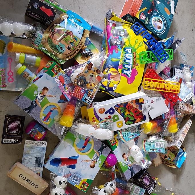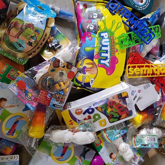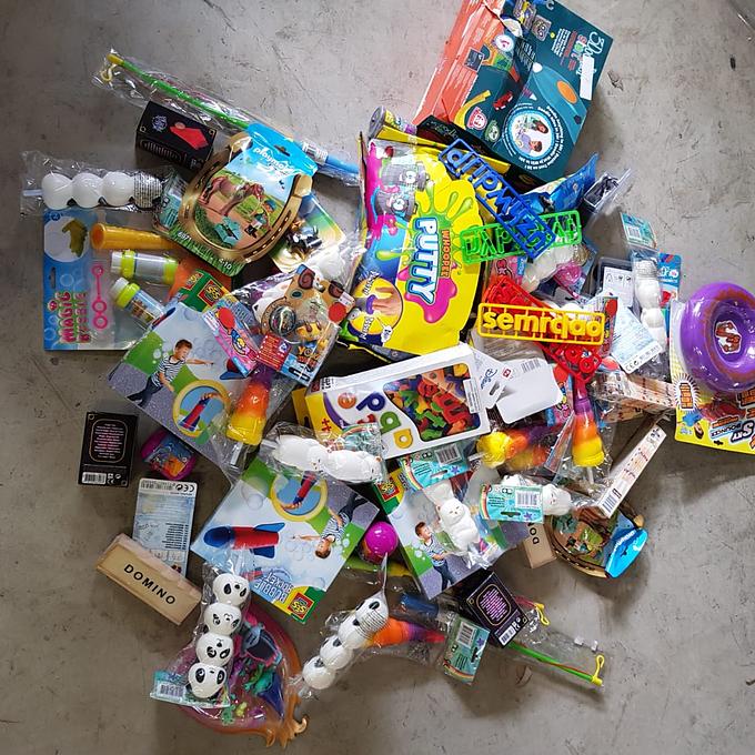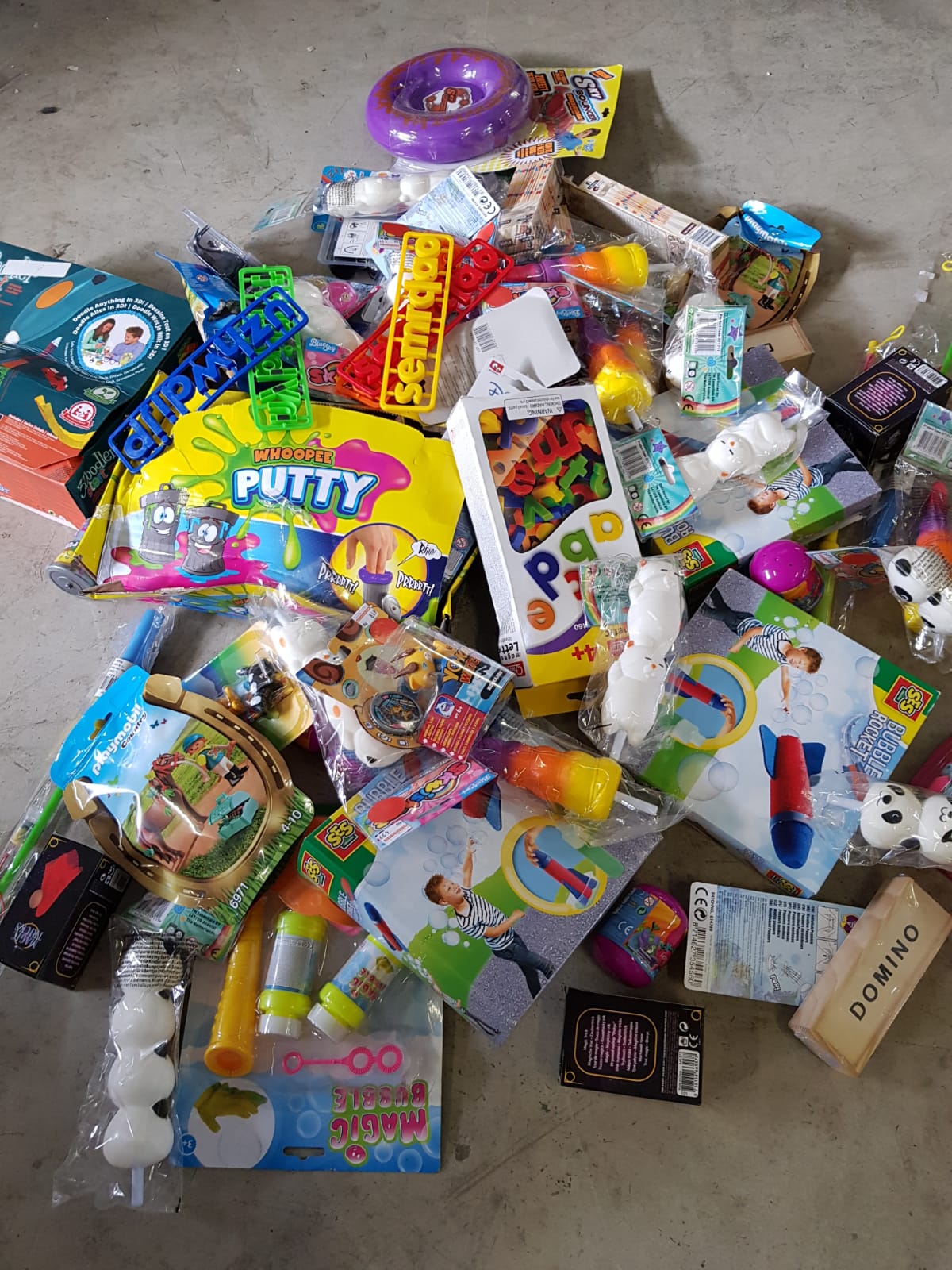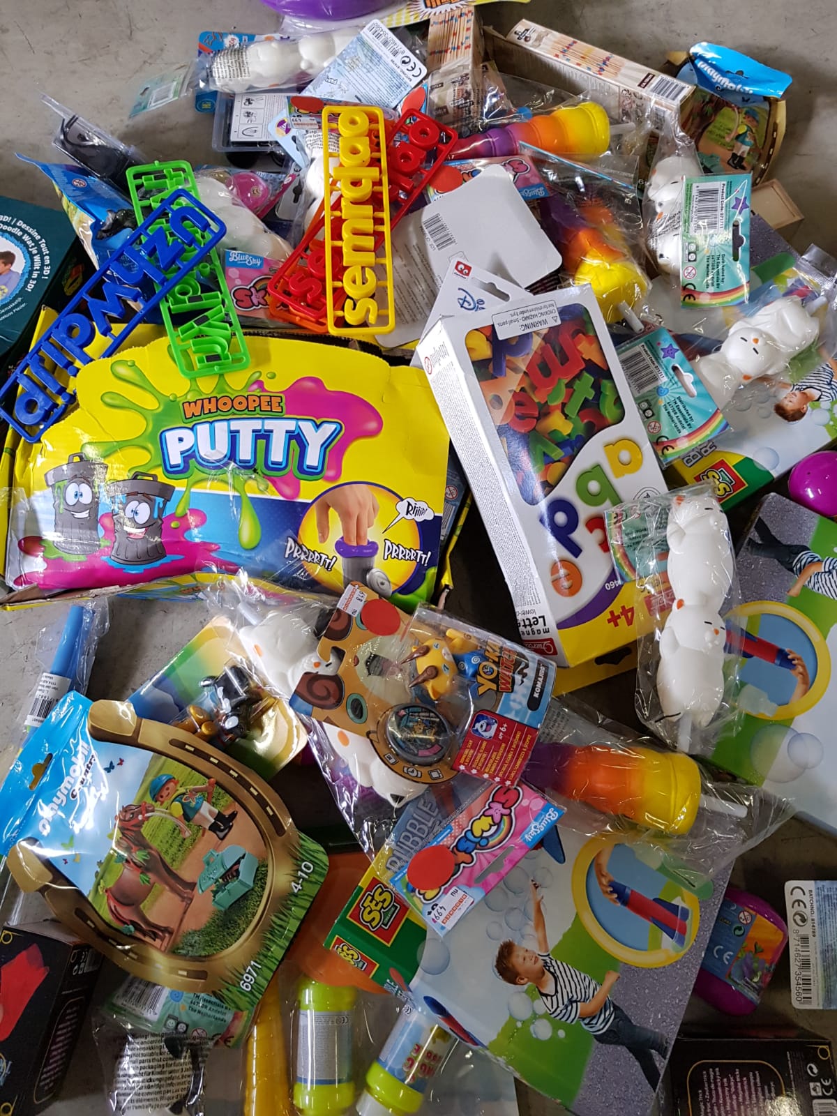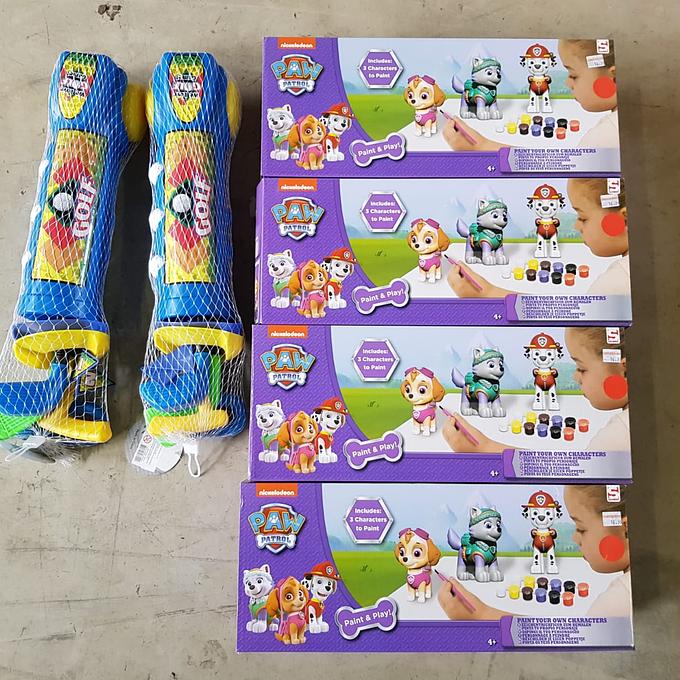 Bestaande uit: 4x Paw Patrol paint your own characters, 9x Fisher Price Disney speelgoed, 2x speelgoed golfset, Fisher Price megablocks pets, 4x Magic pizza, speelgoed kassablok, Fisher Price medical kit, allemaal klein speelgoed en spellen (zie foto's)