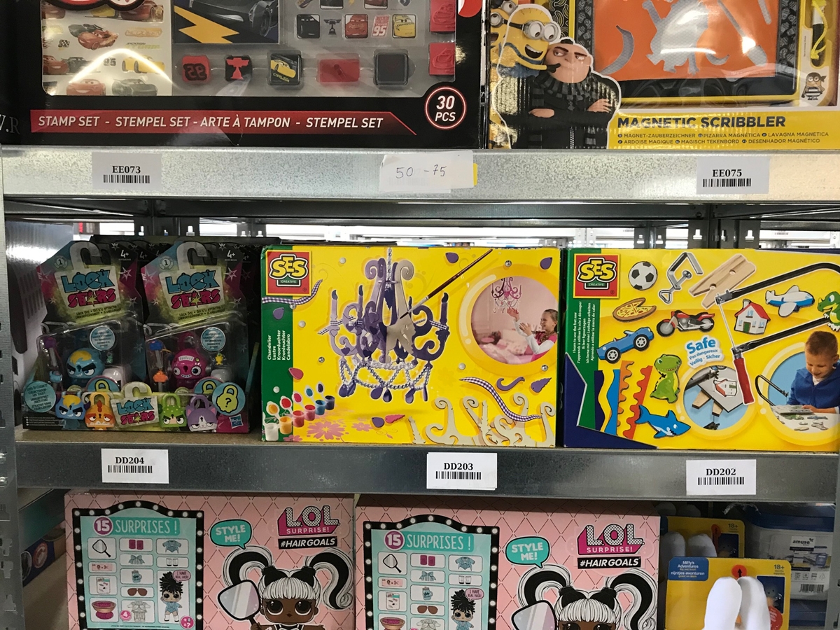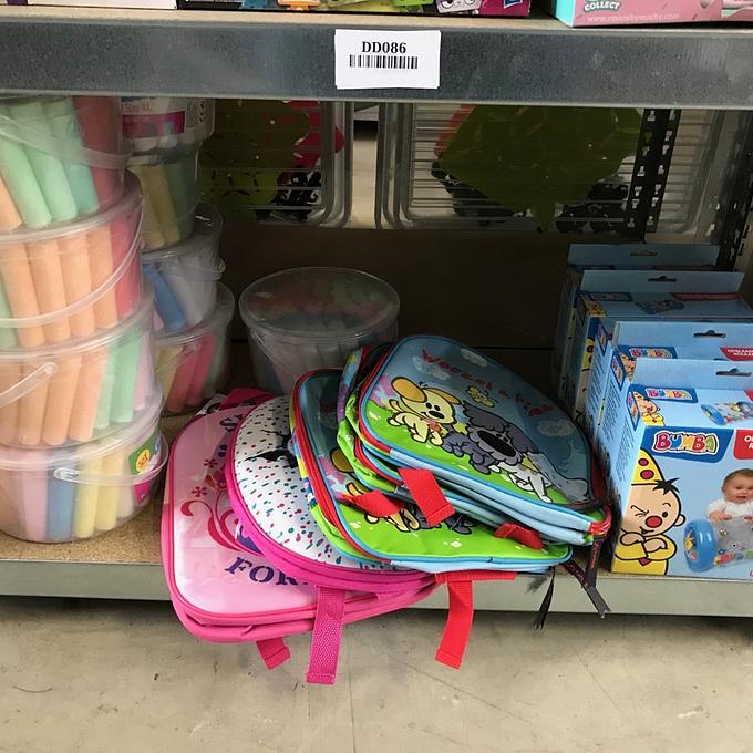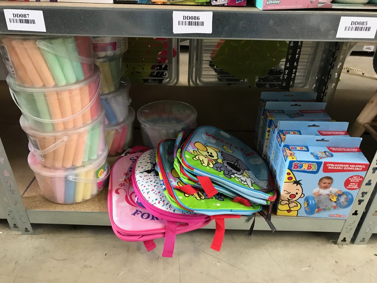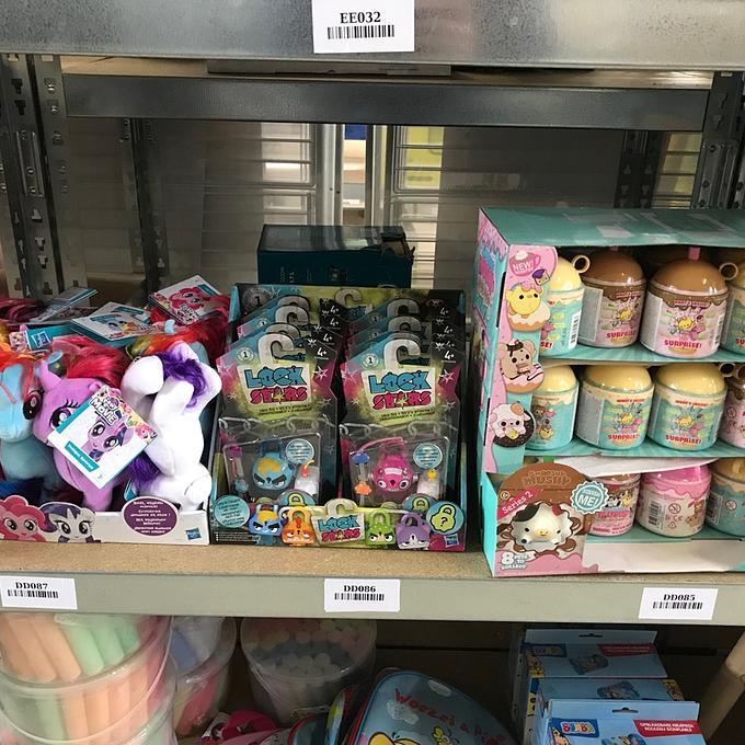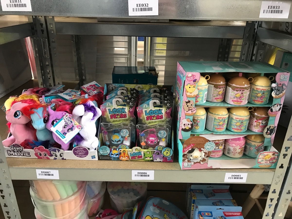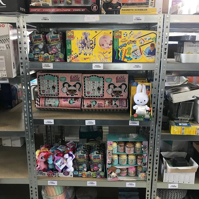 Bestaande uit: 4x cars stempelset, 3x magnetisch tekenbord, 16x Lockstars artikel, 5x SES kandelaar, 4x SES Ik leer figuurzagen, 24 LOL poppen in verpakking, 4x knuffel van nijntje, 12x My little pony knuffel, 22x smooshy mushy, 9x krijtemmer, 5 tassen en 5x Bumba opblaasbare kruiprol, zie foto's