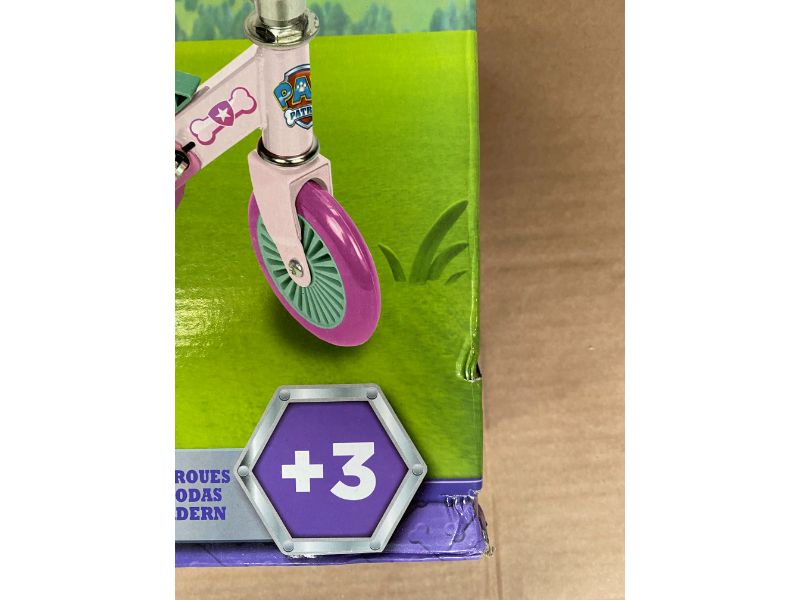 Voorzien van: • 5" wielen • Massieve banden • Zeer licht! Gewicht ca. 3 kg. • Metalen balhoofd met kogellagers • Eenvoudig zeer klein op te vouwen d.m.v. simpel klapmechanisme • In hoogte verstelbaar stuur (59 - 87 cm. hoog) • Aluminium met stalen voorvork • Inklapbare handvatten • Zachte schuim handvatten • Stroeve voetplaat • Weerstandsrem op achterband • TüV goedgekeurd • Officieel Paw Patrol product • Let op geschikt voor personen tot max. 50 kg.!