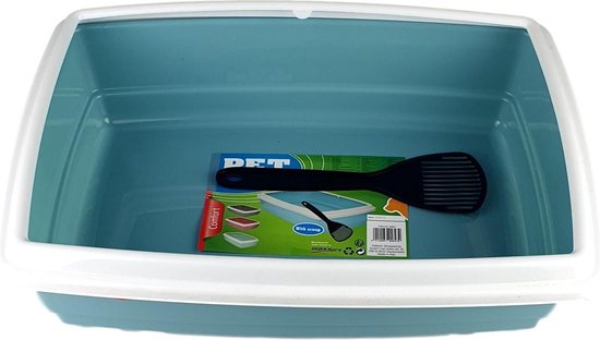 Productbeschrijving: Een praktische, handige en goede kattenbak met schep en morsrand. Ideaal voor kittens en kleine hondjes.