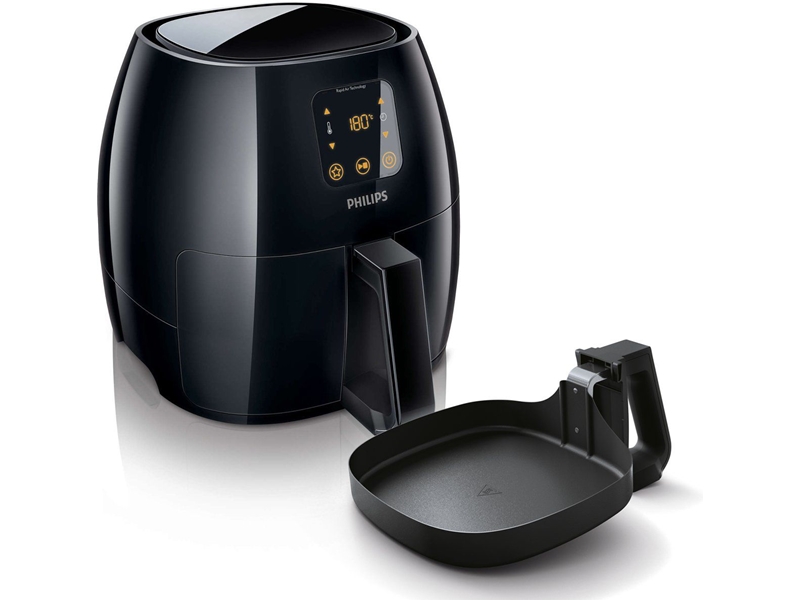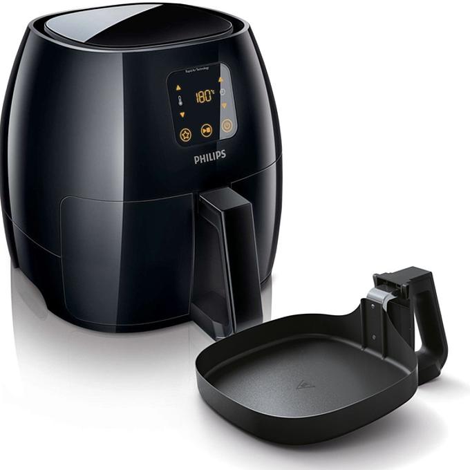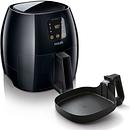 Productbeschrijving: Dankzij de Turbostar technologie hoef je de Philips Airfryer XL HD9247/90 Deep Black niet meer voor te verwarmen. Handig, want zo bespaar je een hoop tijd en ga je gelijk aan de slag met bakken. De Turbostar technologie voert ook het vet af dat vrijkomt tijdens het bakken, zodat je bereiding gezonder is. Dankzij de koele wand gebruik je deze airfryer gerust in de buurt van kinderen. De buitenkant blijft namelijk koud, zodat je je er niet aan brandt. Je bereidt voor 3 tot 4 personen tegelijk friet of snacks en met de meegeleverde bakplaat maak je pizza's, platte taarten en koeken.