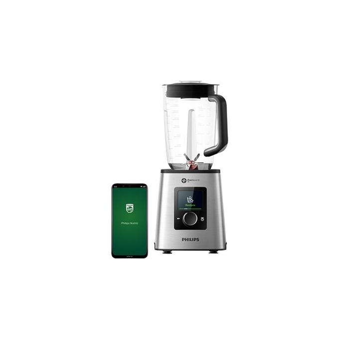 Productbeschrijving: Met de Philips Smart HR3666/00 haal je naast een blender ook gelijk een voedingscoach in huis. Deze blender koppel je namelijk via een app aan je mobiel. Op de NutriU app maak je een profiel aan en kies je een van de gestelde gezondheidsdoelen. Van een boost geven aan je immuunsysteem tot het eten van minder suiker. Je ontvangt vervolgens al het materiaal dat nodig is om dit doel te halen. Het enige dat jij hoeft te doen is de ingrediënten kopen en ze afwegen in de blender. De blender houdt precies bij hoeveel voedingsstoffen de smoothies bevatten en zet dit in een voortgangsschema. Dit maakt het behalen van jouw persoonlijke doelen een stuk gemakkelijker.