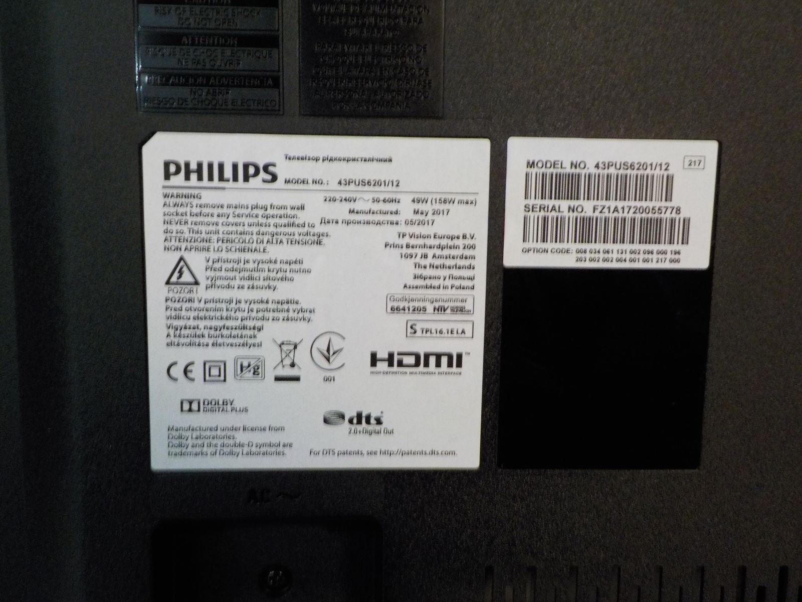Model: 43PUS6201 - Ambilight