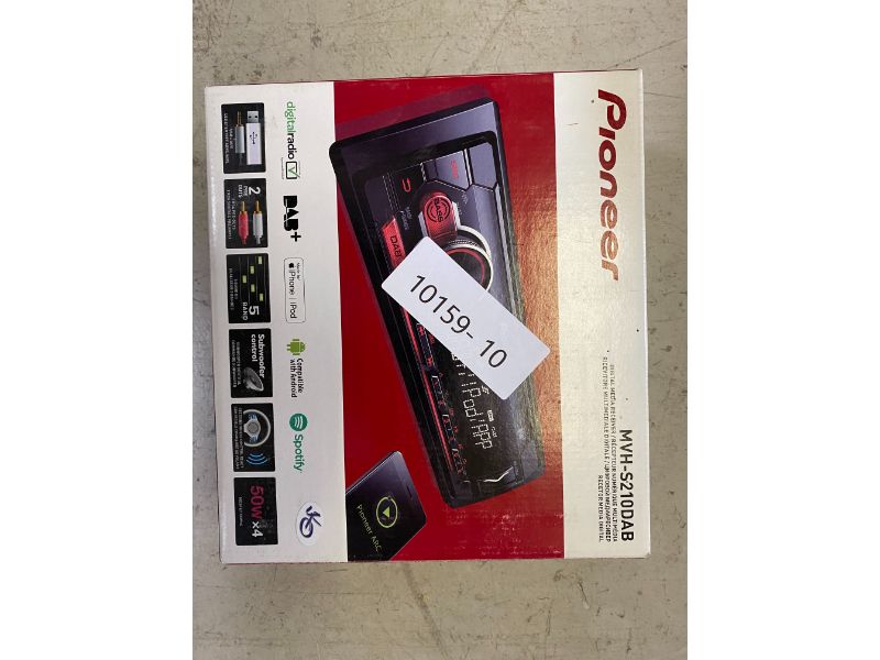 Productbeschrijving: Pioneer MVH-S210DAB. Kleur van het product: Zwart, DIN-norm: 1 DIN, Uitgangsvermogen: 200 W. Beeldscherm type: LCD, Tekstregels: 1 regels, Kleur van de verlichting: Rood. Ondersteunde frequentiebanden: DAB+