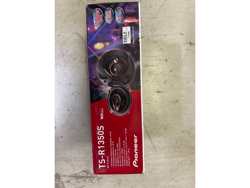 Productbeschrijving: De Pioneer TS-R1350S is een sportief-ogende 3-weg speaker met een maximaal vermogen van 250 Watt. Deze speaker is eenvoudig te monteren in je auto. Dankzij de Multi-layer Mica Matric Cone geniet je van een nauwkeurig geluid met een volle diepe bass.