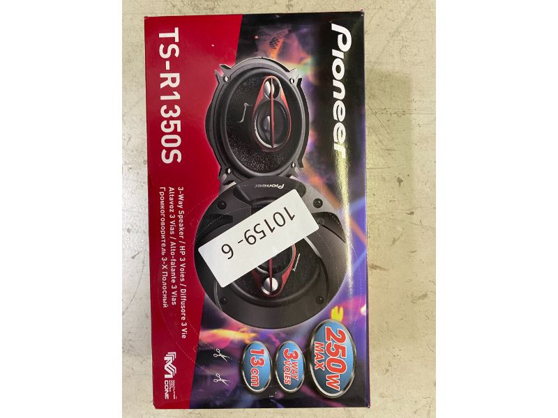 Productbeschrijving: De Pioneer TS-R1350S is een sportief-ogende 3-weg speaker met een maximaal vermogen van 250 Watt. Deze speaker is eenvoudig te monteren in je auto. Dankzij de Multi-layer Mica Matric Cone geniet je van een nauwkeurig geluid met een volle diepe bass.