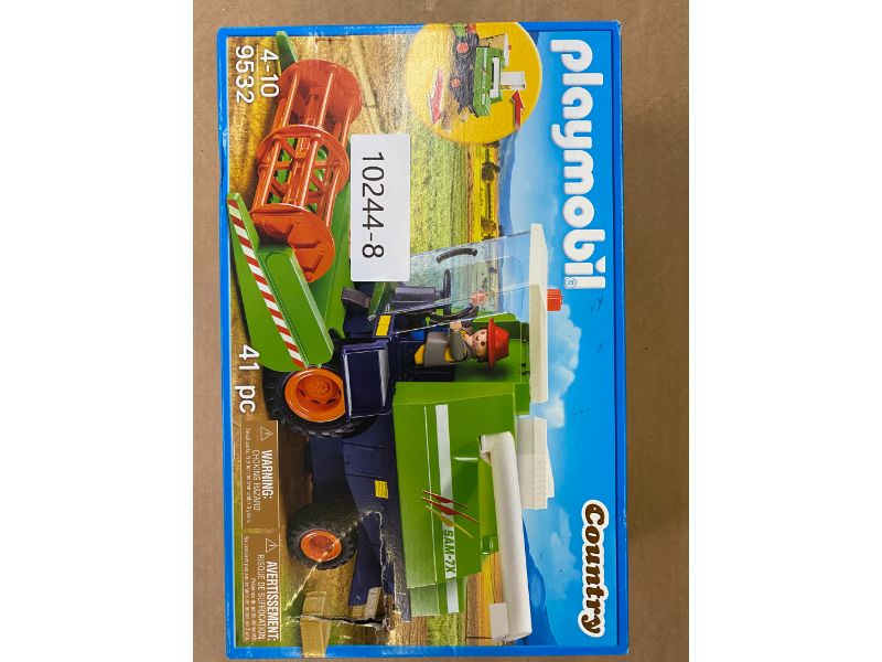 Productbeschrijving: Playmobil 9532 maaidorser. Het graan kan worden geoogst! De boer neemt plaats in de Playmobil combine en gaat aan het werk. De stroblokken kunnen boven in de maaidorsmachine worden ingevoerd waarna ze tijdens het rijden er aan de achterkant weer uit komen. Inclusief 1 Playmobil speelfiguur.