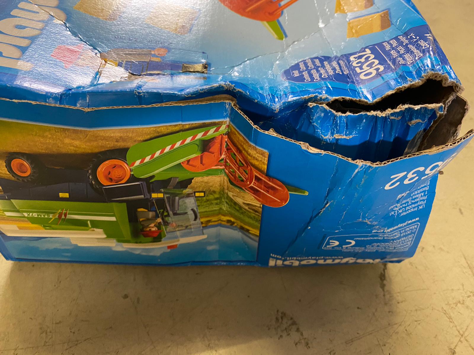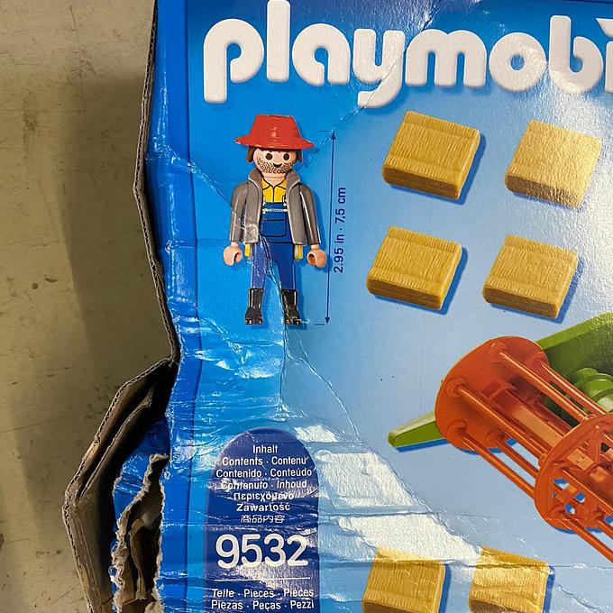 Productbeschrijving: Playmobil 9532 maaidorser. Het graan kan worden geoogst! De boer neemt plaats in de Playmobil combine en gaat aan het werk. De stroblokken kunnen boven in de maaidorsmachine worden ingevoerd waarna ze tijdens het rijden er aan de achterkant weer uit komen. Inclusief 1 Playmobil speelfiguur.