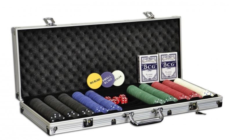 Poker 500 pokerkoffer met standaard poker chips in aluminium koffer