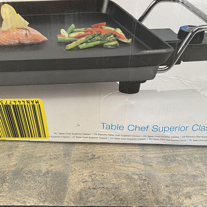 Productbeschrijving: De Princess 102240 Table Chef Superior is de perfecte bakplaat voor iedereen die graag regelmatig gezellig wil eten met familie en vrienden. De extra dikke bakplaat is maar liefst 4 mm dik en is zo gemaakt dat deze niet kan vervormen. Daarnaast heeft de bakplaat een extreem duurzame antiaanbaklaag.