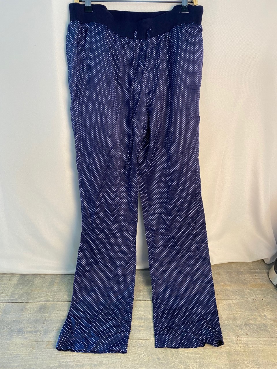 Productbeschrijving: Pricesse tam tam Pyjamabroek Donkerblauw Dots in maat 38. De pyjamabroek is gemaakt van katoen, zijde, viscose, polyamide en elasthaan. De broek heeft een elastieken taille met strikkoord.