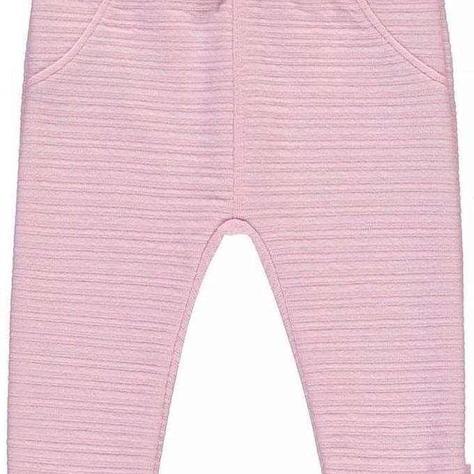 Productbeschrijving: Zarina is een mooi roze broekje van Quapi Newborn. Het broekje heeft een ingeweven patroon. Aan de voorkant heeft het broekje 2 nep-zakjes aan de achterkant zit een echt zakje. Het broekje heeft een elastische tailleband met door de tunnel een aantrekkoord.