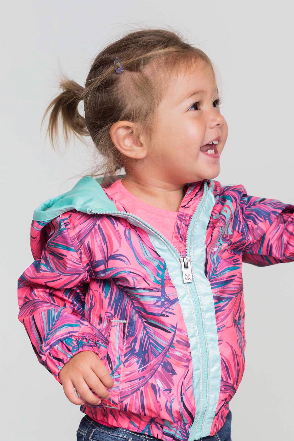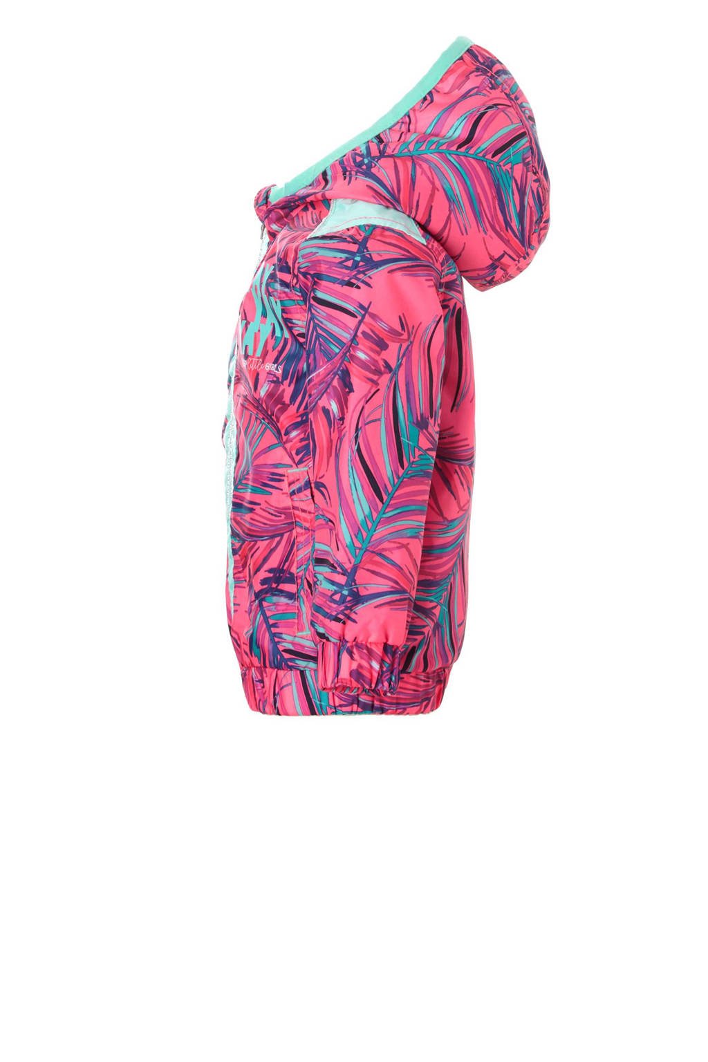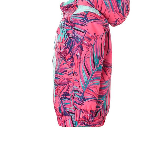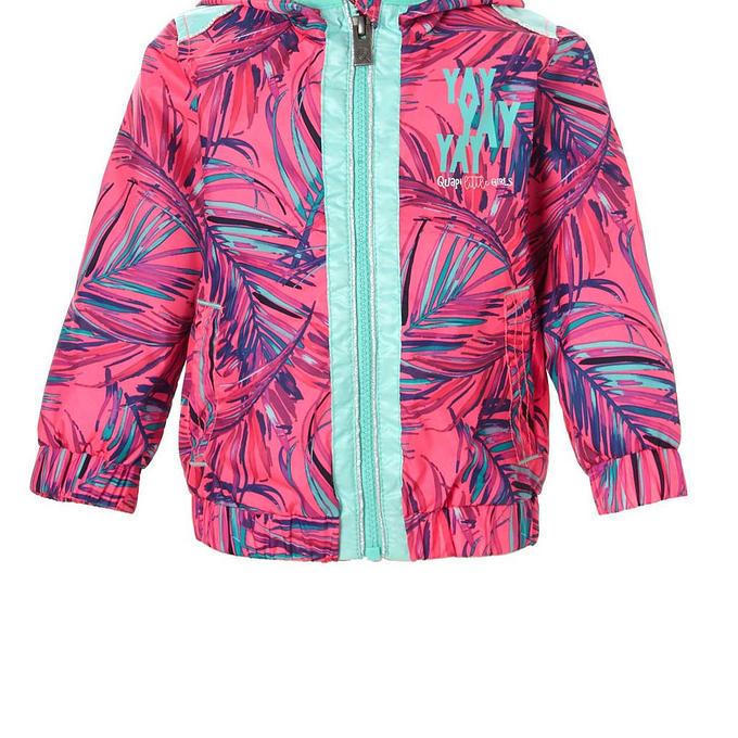 Productbeschrijving: Meisjes baby zomerjas, model Joy, van het merk Quapi,. Deze zonnige jas heeft een allover bladeren print op een neon roze achtergrond. Met een zachtblauwe ritssluiting met een sierbies er langs en met een zilverkleurige glitterdraad. De gevoerde jas heeft een vaste capuchon, uni lichtblauwe schouderstukken en elastische boorden aan de mouwen. Met 2 steekzakken en een kleine print op de borst.