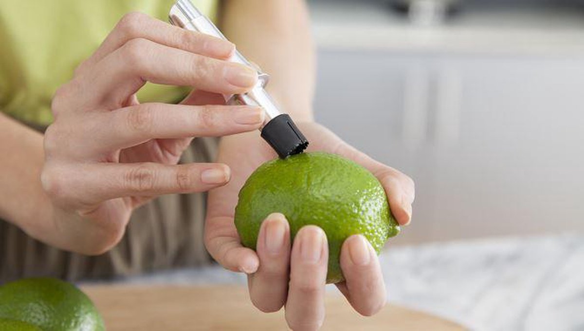 Productbeschrijving: Citroen, limoen, sinaasappel: een paar druppels is vaak al genoeg om je eten of drinken naar een hoger niveau te tillen. Vandaar: Stem. Een ingenieus apparaatje dat je in de citrusvrucht steekt waarna je het sap met één druk op de knop verstuift.