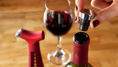 Over de Quirky 4-in-1 wijnopener (kurkentrekker, foliesnijder, schenker en stopper) Rood