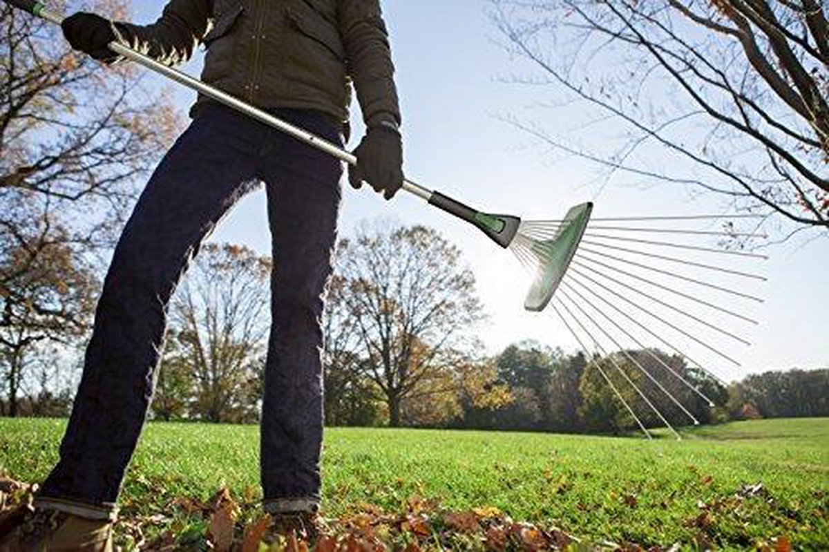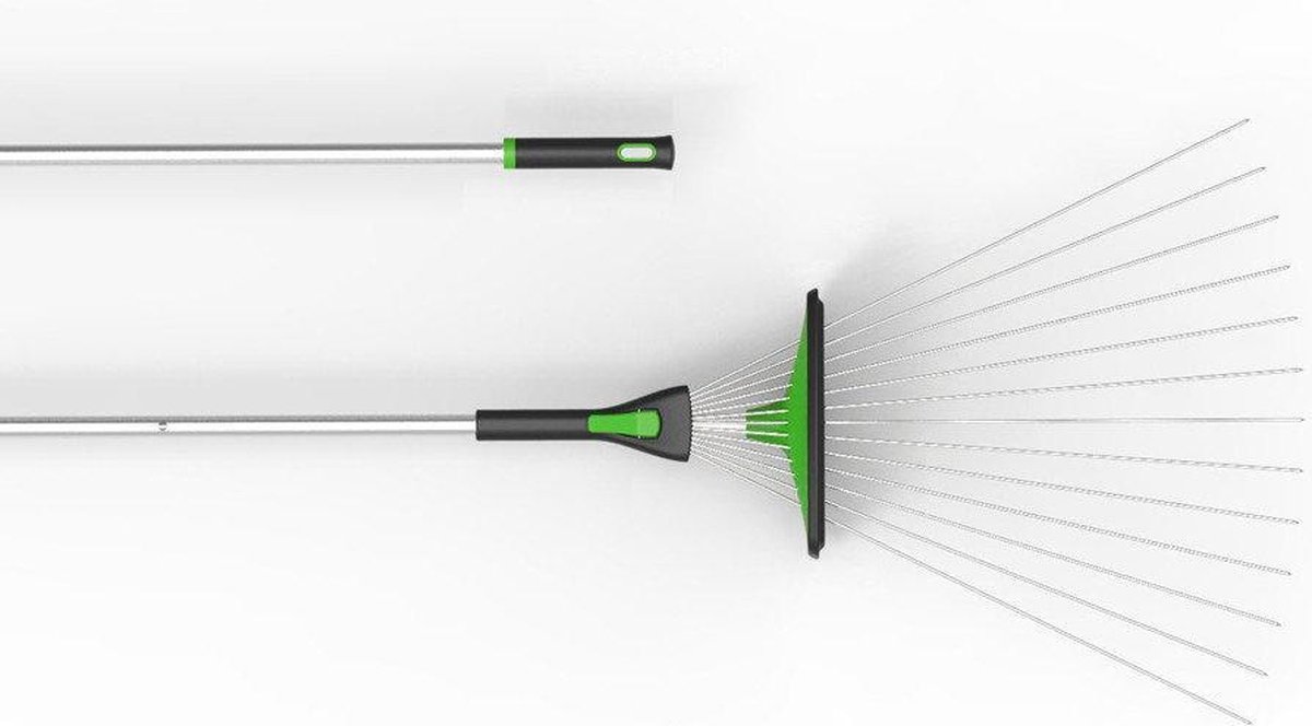 Over de Quirky schuifbare hark voor tuingras en bladeren Rake-n-Tamp