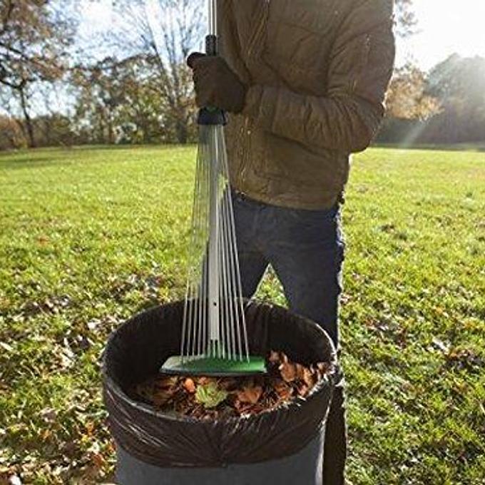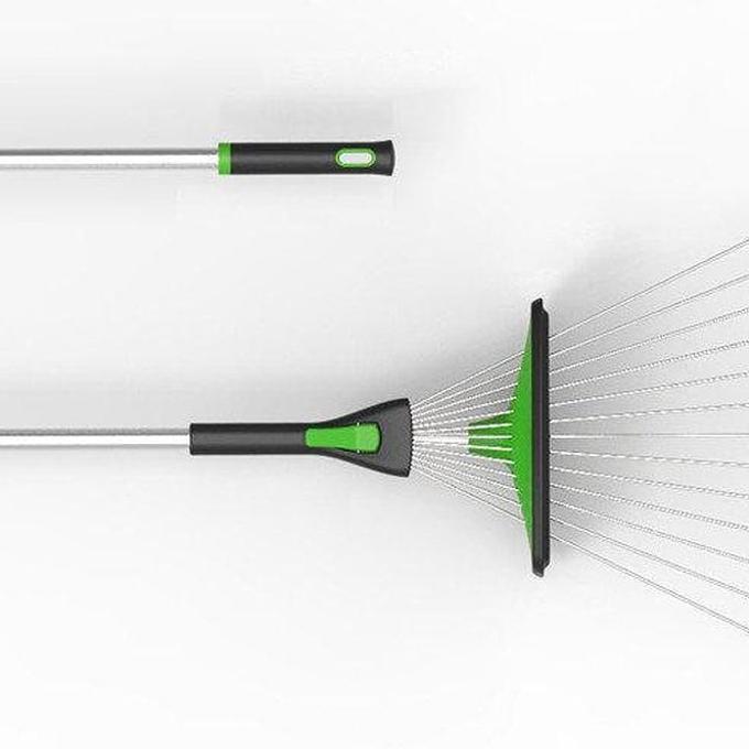 Over de Quirky schuifbare hark voor tuingras en bladeren Rake-n-Tamp