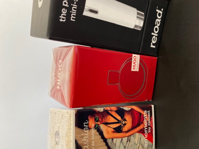 Productbeschrijving: Het is een tas verstuiver met een reservoir voor 5 ml parfum. Je krijgt er een reservoir, een verloopstukje en een trechtertje bij zodat je eenvoudig je eigen parfum kan overhevelen. Dat kan op twee manieren; of je gebruikt het trechtertje, of je zet het reservoir op je eigen parfumfles door het ‘spuitmondje’ er af te draaien en vervolgens je parfum over te ‘spuiten’ in het reservoir. Onder andere twee gerutjes van Hugo Boss.