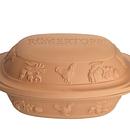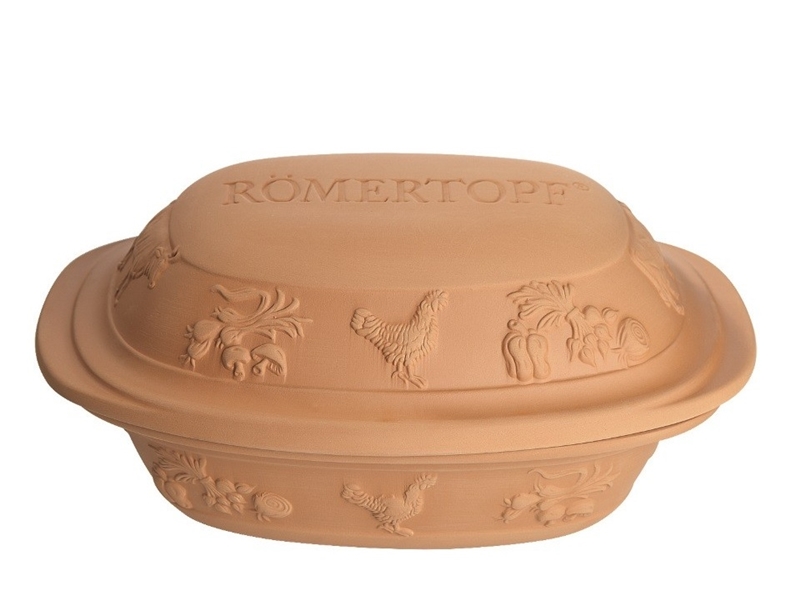 Productbeschrijving: In de Römertopf kunnen allerlei ingrediënten, zoals vlees, vis, aardappelen, groenten en zelfs appels, op een gezonde manier bereid worden. Bij het braden en stoven blijven smaak, geur en sap maximaal behouden, en toevoeging van vet is uiteraard niet nodig. Het gebruik van de Römertopf stamt al uit de tijd van de Romeinen, en wordt daarom ook wel 'Romeinse stoofpot' genoemd.Voor gebruik moet de Römertopf minimaal 15 minuten in koud water worden geplaatst. De schaal zal dit vocht opnemen. Door de schaal met deksel in de oven te plaatsen en deze langzaam op te warmen, ontstaat er een oven in een oven. Gedurende het bakproces zal het water verdampen, waardoor er een nevel ontstaat die de ingrediënten gaar stoomt. Hierdoor gaan vitaminen en voedingsstoffen niet verloren tijdens het kookproces. Ook is aanbakken onmogelijk. De schaal is erg gevoelig voor temperatuursschommelingen en mag daarom nooit in een voorverwarmde oven worden geplaatst. Ook het plaatsen van een hete schaal, direct uit de oven, op een zeer koud oppervlak kan voor problemen zorgen. De binnenzijde is geglazuurd, de schaal is eenvoudig te reinigen en magnetronbestendig. Een receptenboekje is bijgesloten. Deze 4-persoons Römertopf is geschikt voor de bereiding van ongeveer 2,5 kilo vlees, vis e.d.