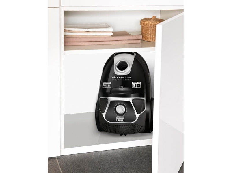 Productbeschrijving: De Rowenta stofzuiger Compact Power Animal Care RO3985 is speciaal ontworpen voor mensen met huisdieren die dierenharen willen verwijderen. De mini-turboborstel verwijdert haren snel en efficiënt van tapijt en meubels. Het hoogefficiënte filter houdt allergenen en bacteriën die huisdieren mee naar binnen brengen beter vast. Zeer geschikt voor het reinigen van harde vloeren: De Compact Power™ heeft een nieuwe, krachtige en zeer efficiënte zuigmond, de beste in zijn klasse op harde vloeren. Lage stofheruitstoot: Compact Power™ biedt ongeëvenaarde filterprestaties door een schuimfilter voor de motor, en een speciaal en zeer doeltreffend filter net voor de luchtuitgang dat zelfs de kleinste deeltjes stof vasthoudt die de motor uitstoot. 99,98% van het opgezogen stof wordt gefilterd. Geavanceerde technologie voor hoge energie-efficiëntie: De geavanceerde technologie van de nieuwe EffiTech Motor verbruikt minder energie om meer stof op te nemen en is daarmee toonaangevend wat betreft energie-efficiëntie.