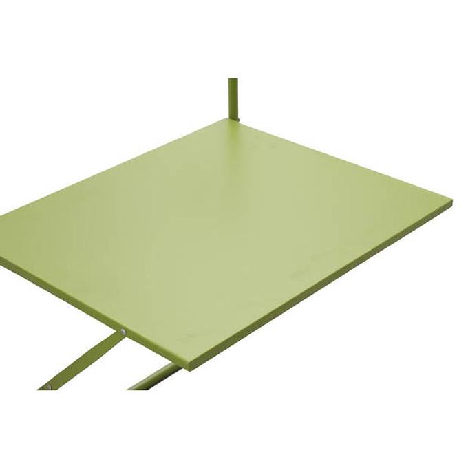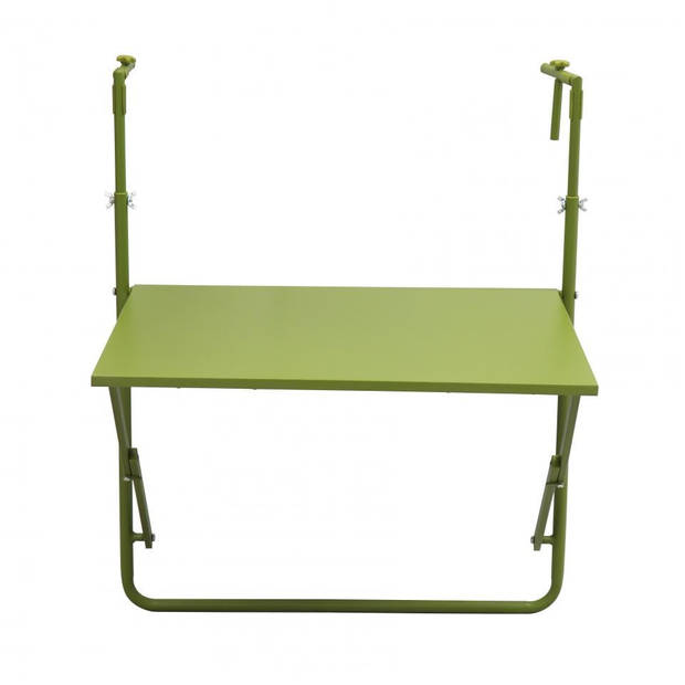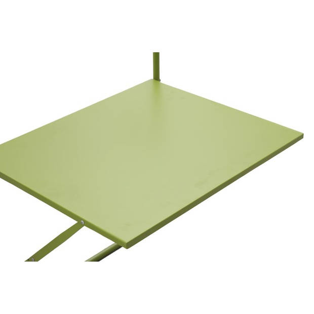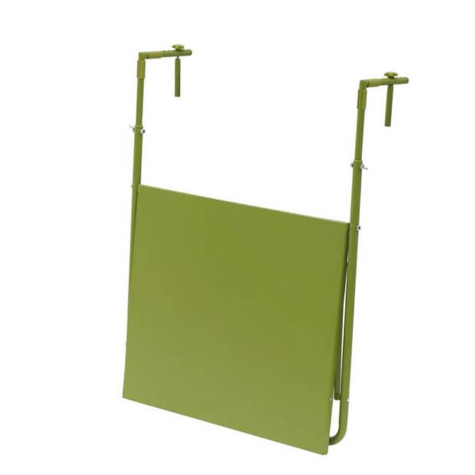 Productbeschrijving: Deze balkontafel van het merk Royal Patio is gemaakt van een stalen frame en tafelblad in de kleur groen. De balkontafel kan je ophangen en is inklapbaar waardoor deze ideaal is voor op het balkon. Met deze balkontafel kan jij genieten van een drankje op je balkon zonder daar veel ruimte voor kwijt te zijn. Daarnaast is dit tuinmeubel onderhoudsarm waardoor jij optimaal kan genieten. De afmeting van deze tafel is : 64,8 x 63 x 79 cm en dit tuinmeubel valt binnen de Toronto serie van het merk Royal Patio