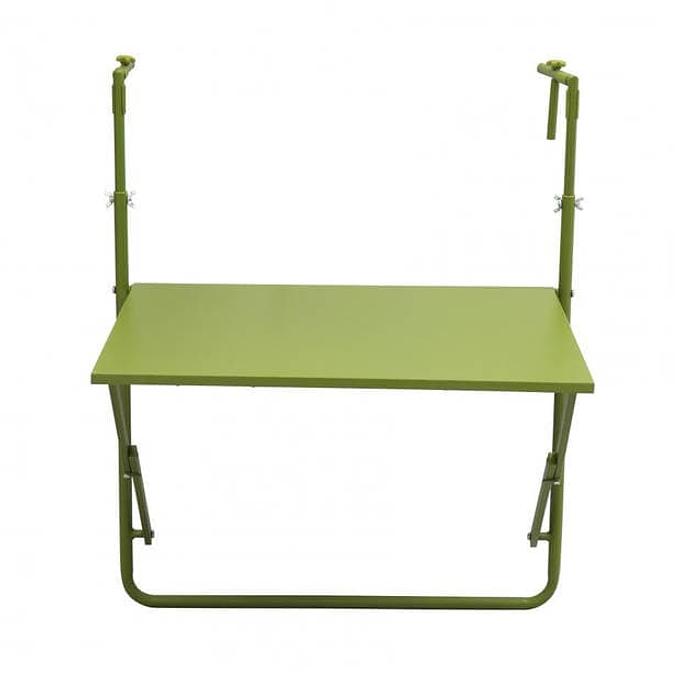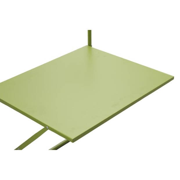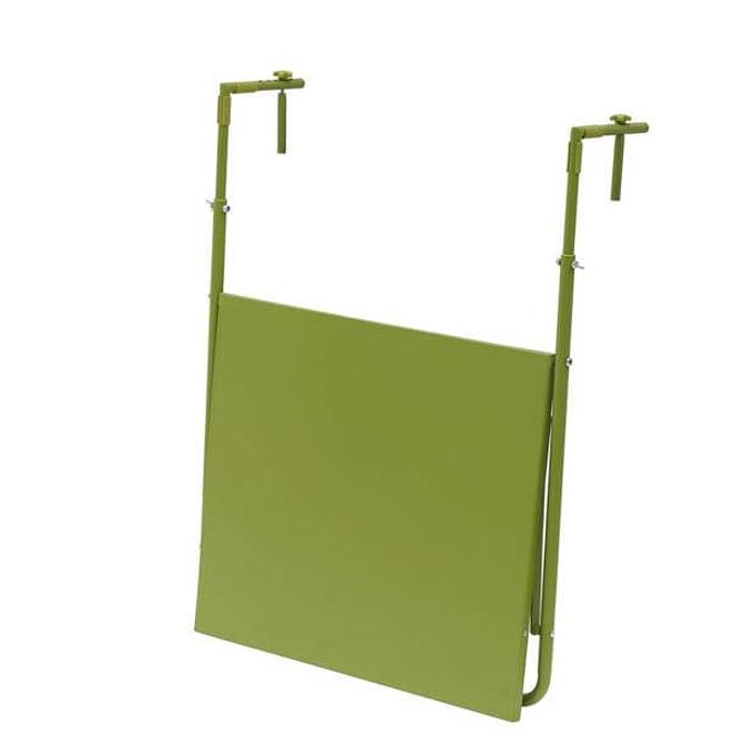 Productbeschrijving: Deze balkontafel van het merk Royal Patio is gemaakt van een stalen frame en tafelblad in de kleur groen. De balkontafel kan je ophangen en is inklapbaar waardoor deze ideaal is voor op het balkon. Met deze balkontafel kan jij genieten van een drankje op je balkon zonder daar veel ruimte voor kwijt te zijn. Daarnaast is dit tuinmeubel onderhoudsarm waardoor jij optimaal kan genieten. De afmeting van deze tafel is : 64,8 x 63 x 79 cm en dit tuinmeubel valt binnen de Toronto serie van het merk Royal Patio.