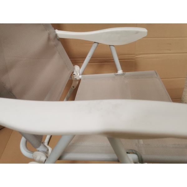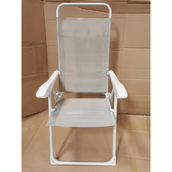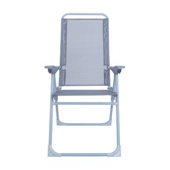 Productbeschrijving: Deze elegante tuinklapstoel met hoge rugleuning is ideaal voor ontspannende uurtjes in de tuin of op het terras. Het synthetische gaas is duurzaam, past zich perfect aan het lichaam aan en zorgt voor een goede ventilatie tijdens het zitten. Bovendien is de stoel heel licht, omdat het frame van aluminium is.