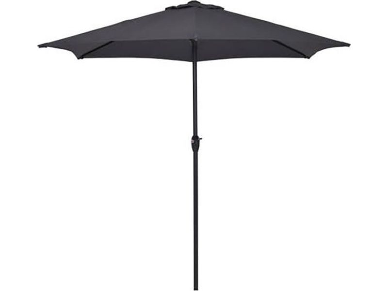 Productbeschrijving: Parasol Terni in de kleur antraciet van het merk Royal Patio is een elegante parasol met een gemakkelijk bedienbaar slingermechanisme. De parasol heeft een gepoedercoat stalen frame met een stokdiameter van 3.6 - 3.8 cm. Het doek is gemaakt van polyester en heeft een diameter van 250 cm. De parasol wordt geleverd exclusief parasolvoet.
