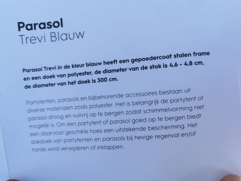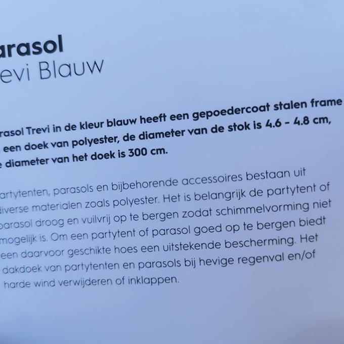 Productbeschrijving: Naast een heerlijke plaats om af te koelen, biedt deze waterdichte parasol ook bescherming tegen schadelijke UV-stralen, die met name in de zomer gevaarlijk kunnen zijn. Met een UPF-beschermingsfactor van 50+, worden meer dan 98% van alle UV-stralen afgeweerd. Zo kunnen uw gasten in de schaduw van de parasol zorgeloos genieten van een hapje en een drankje, zonder dat zij zich zorgen hoeven te maken over hun huid.