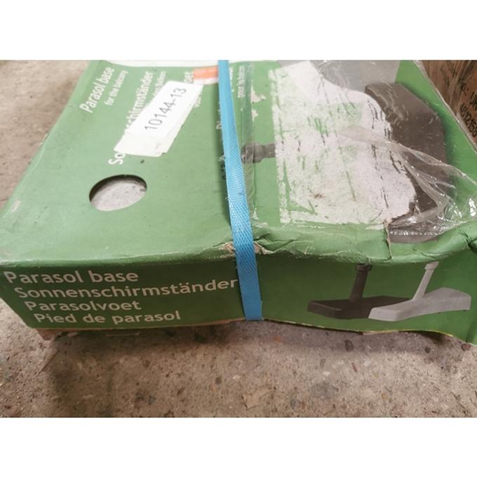 Productbeschrijving: Deze parasolvoet is gemaakt van beton en is 20 kg zwaar. Met deze parasolvoet kun je een (kleine) parasol perfect op zijn plaats houden. De voet is grijs van kleur en heet een afmeting van 45x11 cm. Deze parasolvoet in geschikt voor parasols met een doorsnee van maximaal 2 meter en met een stokmaat van 21-54 mm.Nu met nieuwe gepatenteerde SuperGrip klemmoer. Dankzij deze klemmoer 4 x meer grip waardoor de parasolstok steviger wordt vastgeklemd. Door het gebruik van een speciale kunststof komen er geen beschadigingen aan de parasolstok.