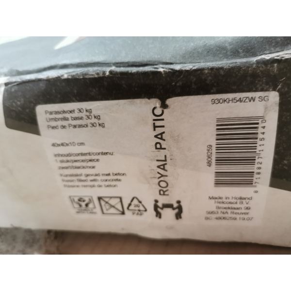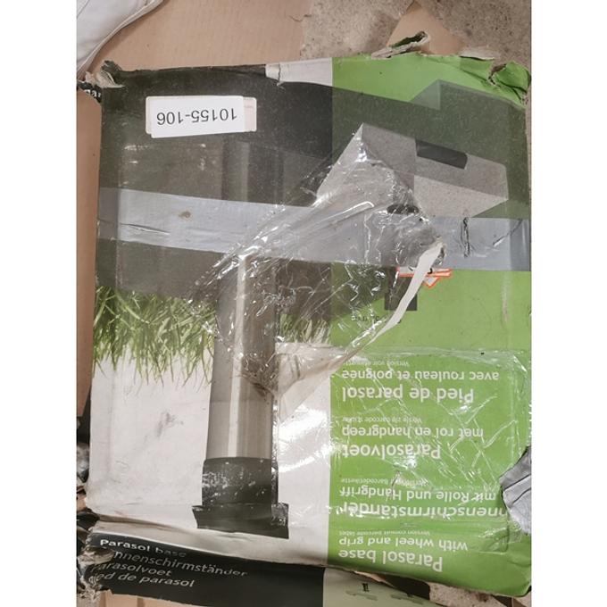 Productbeschrijving: Met deze parasolvoet blijft uw parasol stevig op zijn plaats. hij heeft 2 handvatten voor gemakkelijker transport en is geschikt voor parasols met een mast met een diameter van 21-54 mm