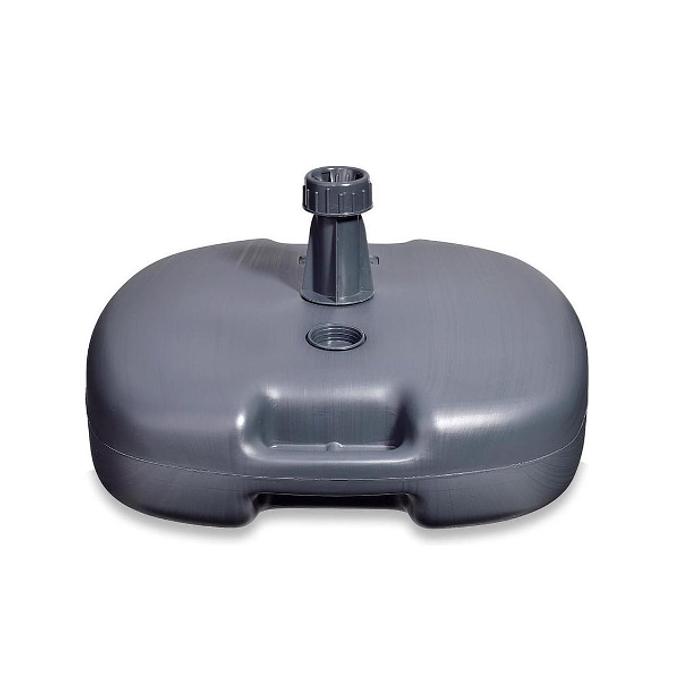 Productbeschrijving: Deze parasolvoet van het merk Royal Patio dient gevuld te worden met water of zand om hem te verzwaren. Er kan maar liefst 20 liter in de parasolvoet. Dit is zwaar genoeg om een parasol tot ø180 cm perfect op zijn plaats te houden. Deze parasol is geschikt voor parasols met een stokdiameter tot 3,5 cm. De voet is grijs van kleur en heeft een handvat zodat je hem gemakkelijk kunt verplaatsen.