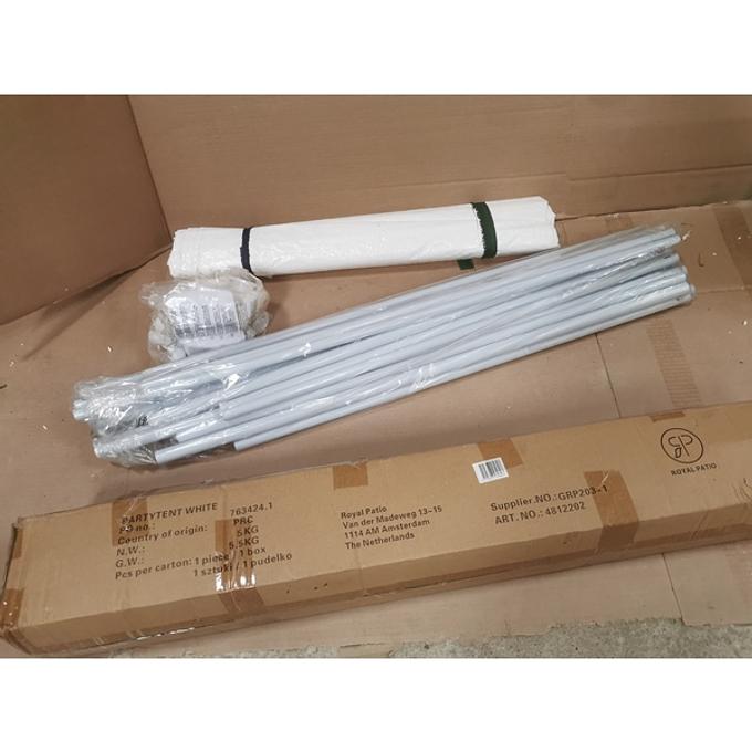 Productbeschrijving: Deze partytent van het merk Royal Patio is gemaakt van een stalen frame een doek van polyester in de kleur wit. Deze partytent is ideaal voor elke buitenactiviteit, zoals tuinfeest of barbecue. Deze buitentent kan ook in de tuin geplaatst worden om een grote schaduwrijke en regenvrije plek te creëren om gezellig te zitten met vrienden en familie. De afmeting van het dit tuinartikel is :. 275 x 275 cm