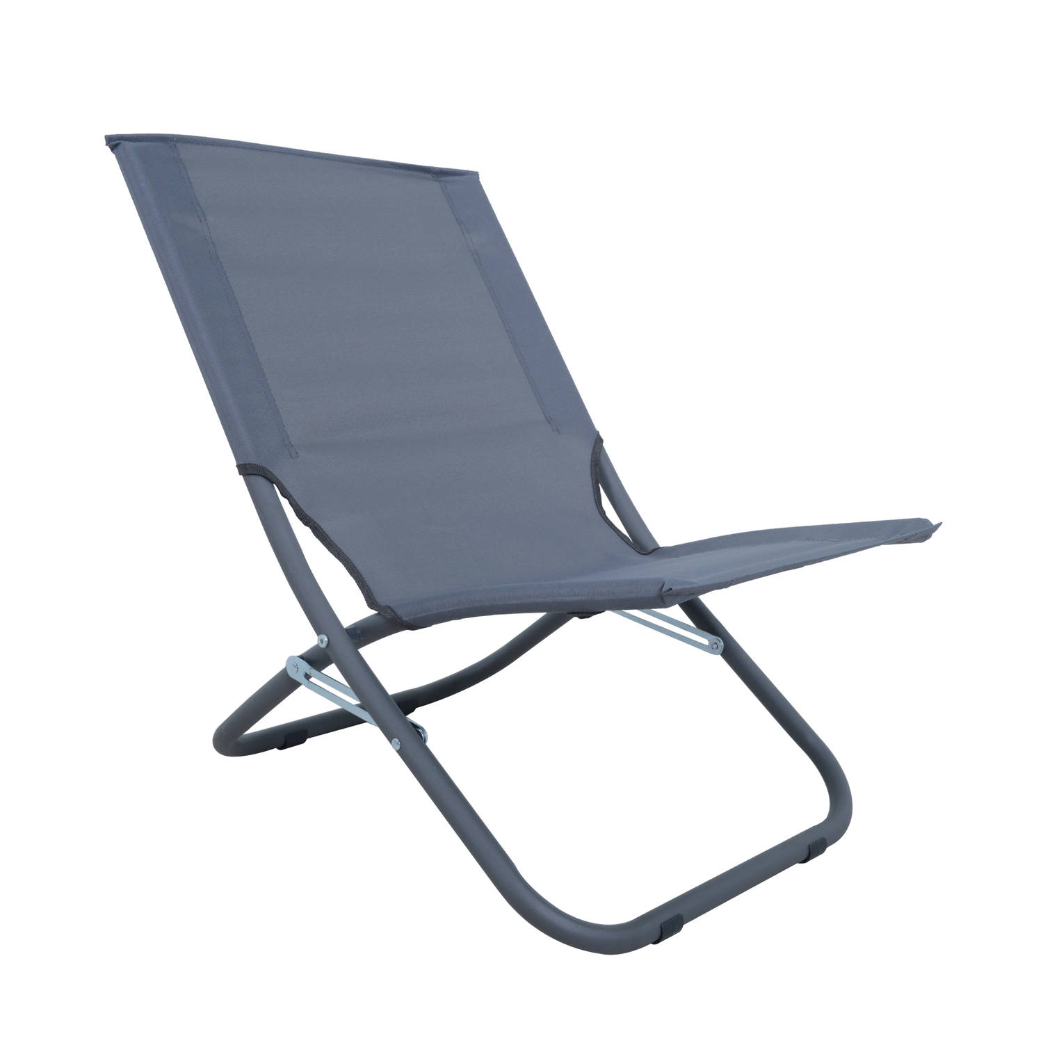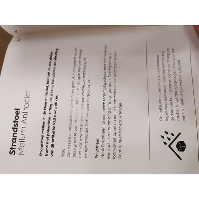 Productbeschrijving: Strandstoel Mellum in de kleur antraciet, bestaat uit een stalen frame met polyetheen zitting. De stoel is inklapbaar en makkelijk te vervoeren