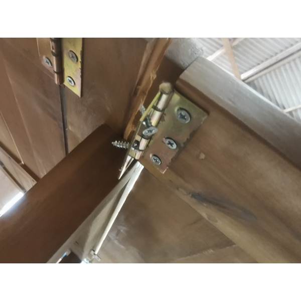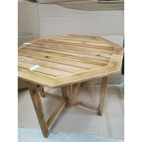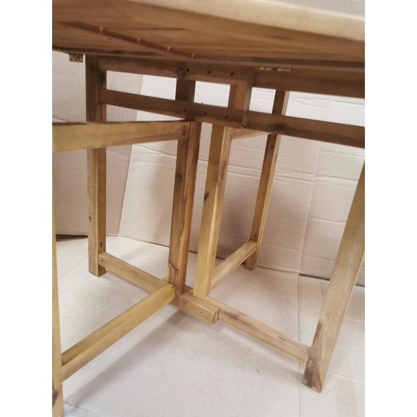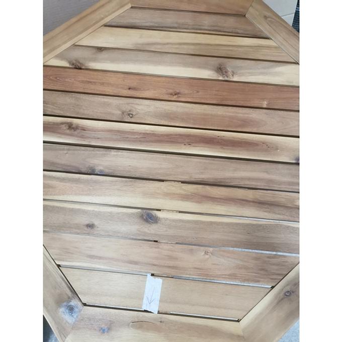 Productbeschrijving: Deze massief houten eettafel heeft een simpel en functioneel ontwerp en is perfect voor tijdens het kamperen of een picknick.