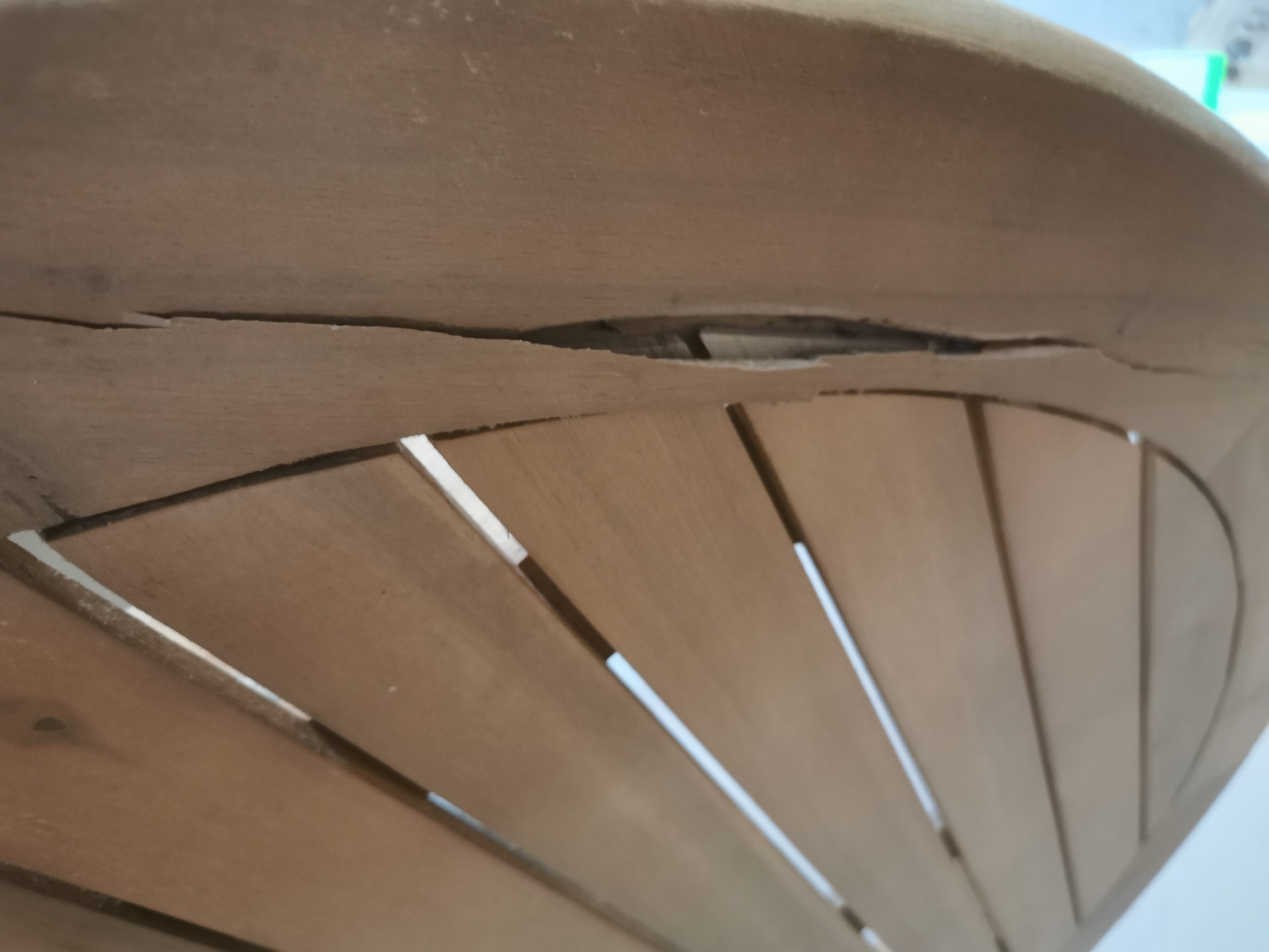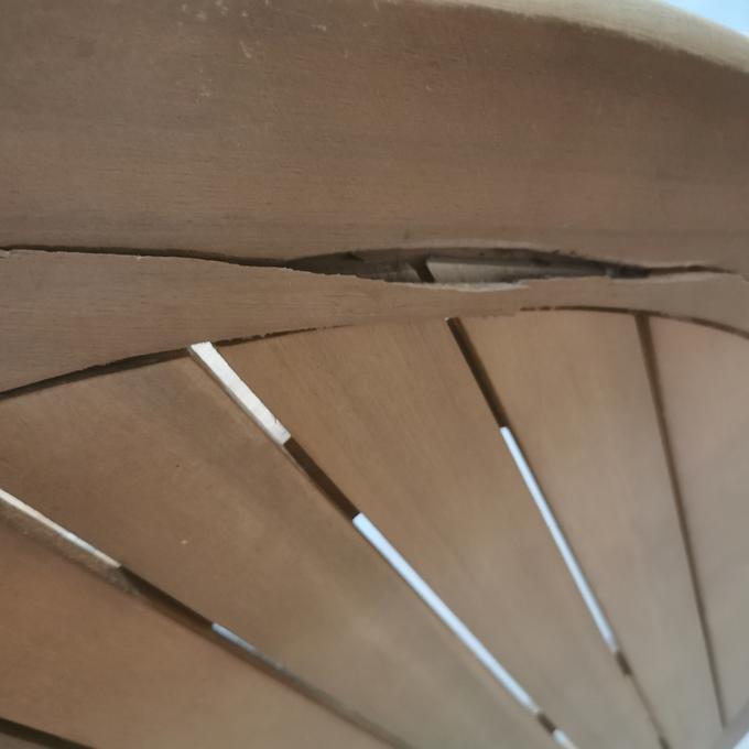 Bijzonderheden: Beschadiging op de tafel en geen tafelpoten aanwezig.