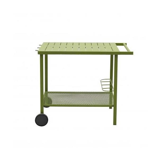 Productbeschrijving: Deze trolley van het merk Royal Patio is gemaakt van een stalen frame in de kleur groen. De trolley is voorzien van 2 wielen aan de voorzijde. Hierdoor kan je gemakkelijk servies, eten of andere spullen van A naar B verplaatsen.