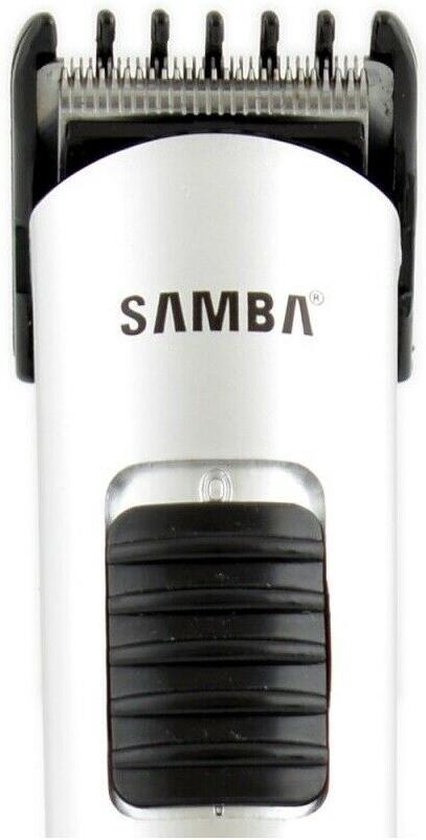 Bestaande uit: 1 x Samba SM-104 baard- en tondeuse. 1 x afneembare opzetkam. 1 x reinigingsborstel. 1 x smeerolie. 1 x netsnoer. 1 x handleiding (Duits).