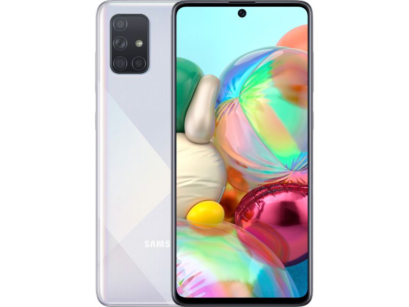 Productbeschrijving: De Samsung Galaxy A71 128GB Zilver is een snelle smartphone met een groot scherm voor het kijken van filmpjes en het spelen van games. De Samsung A71 heeft 128GB opslaggeheugen. Dit is bijvoorbeeld genoeg voor 60.000 foto's of ruim 18.000 liedjes. Dankzij de krachtige processor en 6 GB werkgeheugen draaien games en andere zware apps altijd soepel. Je opent dus snel de 64 megapixel camera om leuke momenten haarscherp vast te leggen. Gebruik de groothoeklens om op vakantie dat grote gebouw of uitgestrekte berglandschap helemaal op de foto te krijgen. Met de macrolens vang je juist de kleinste details van een sieraad of een mooie bloem. Op het grote 6,7 inch scherm heb je meer dan genoeg ruimte voor je games en filmpjes. De grote 4.500 mAh batterij gaat zonder problemen langer dan een dag mee. Met de 25 watt snellader laad je je lege batterij bovendien snel weer op.
