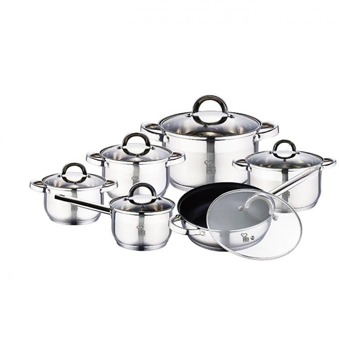 Productbeschrijving: Deze 6-delige pannenset is vervaardigd uit hoogwaardig roestvrij staal. De sandwichbodem uit 5 lagen zorgt voor een snelle warmteverdeling. Alle pannen hebben een passend deksel uit glas met handgreep uit RVS. De braadpan heeft een anti-aanbaklaag Xylan Plus by Whitford en ook een deksel. De kookpannen hebben een meetschaal aan de binnenkant. Geschikt voor alle warmtebronnen.