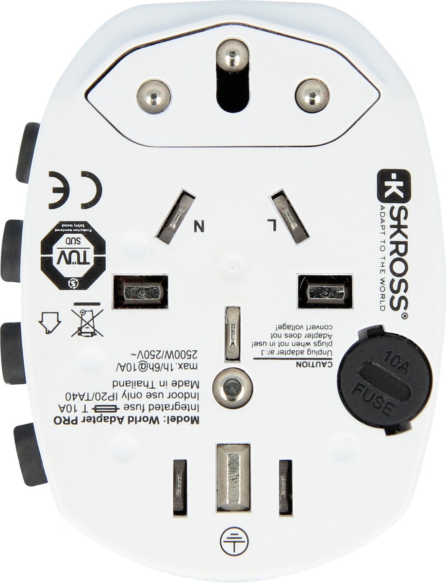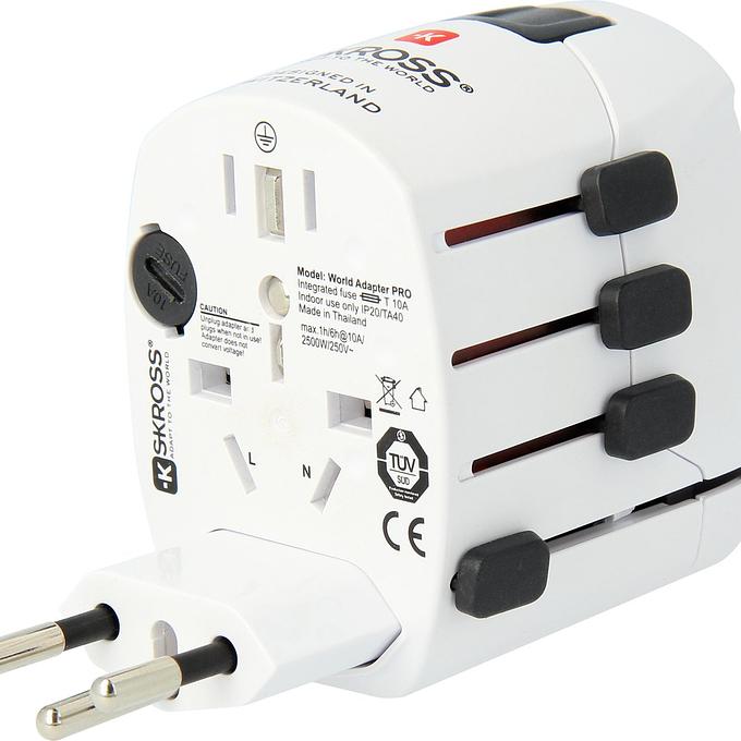Productbeschrijving: De World adapter Pro+ zorgt voor een eenvoudige en veilige aansluiting van alle 2- en 3-polige apparaten van over de hele wereld in meer dan 220 landen. Het beschikbare vermogen t0t 2500W maakt het uniek in zijn toepassing, zelfs voor krachtige apparaten zoals laptops of haardrogers.